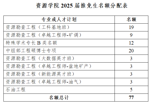 (武汉)2025届本科毕业生推荐免试攻读研究生工作方案》,我院2025届推免生名额分配如下: