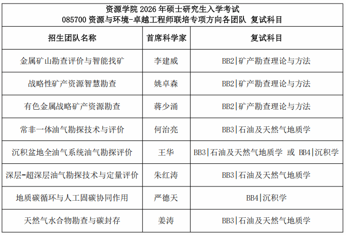 性吧 2026年硕士研究生入学考试085700资源与环境专业卓越工程师联培专项方向各团队复试科目