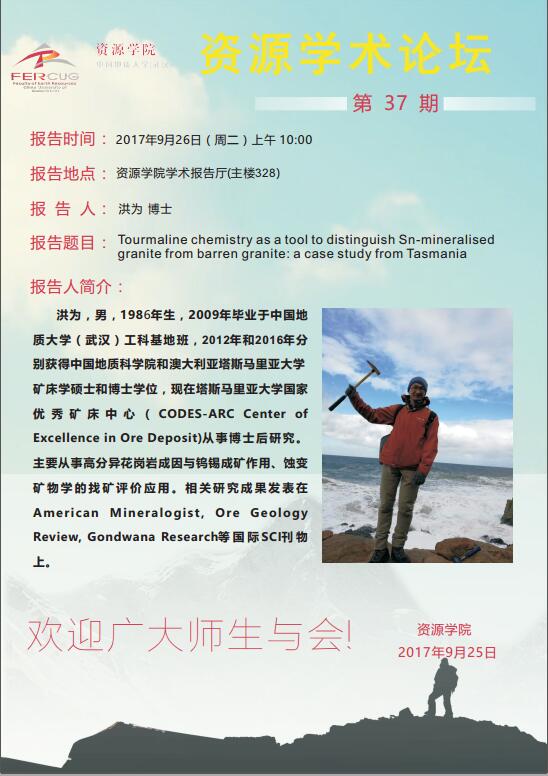 [9月26日]第37期资源学术论坛:洪为学术报告