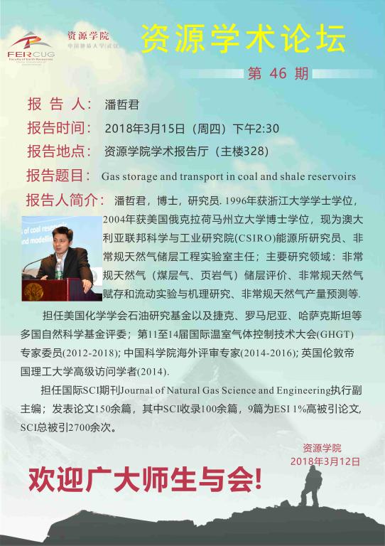[3月15日]第46期资源学术论坛:潘哲君学术报告