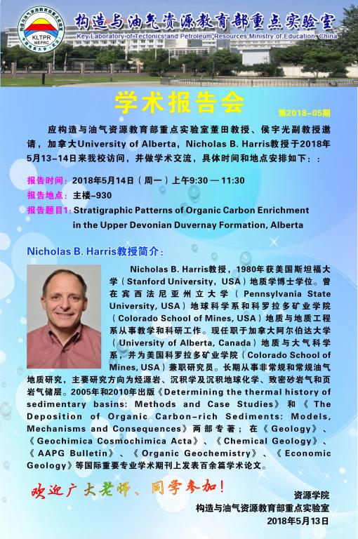 [5月14日]构造与油气资源教育部重点实验室2018-5期:Nicholas B.Harris学术报告
