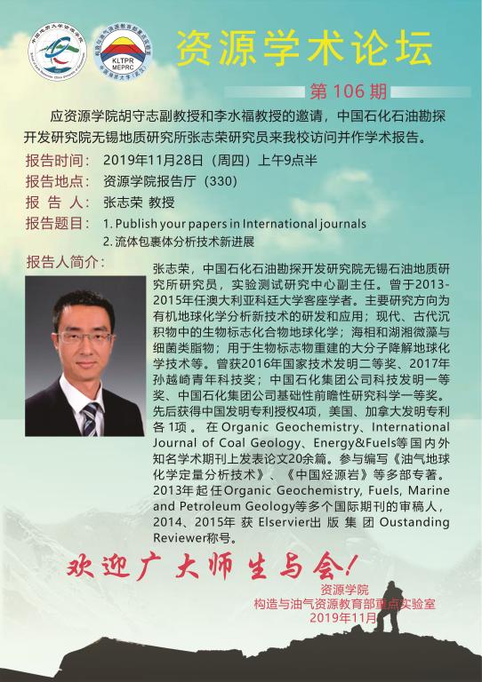 【11月28日】第106期资源学术论坛:张志荣学术报告