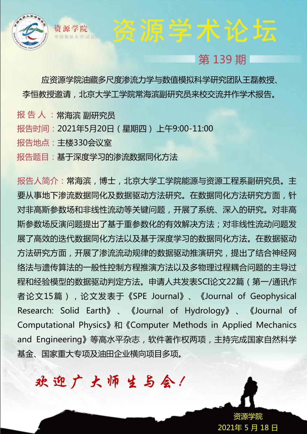 【05月20日】第139期资源学术论坛:常海滨学术报告