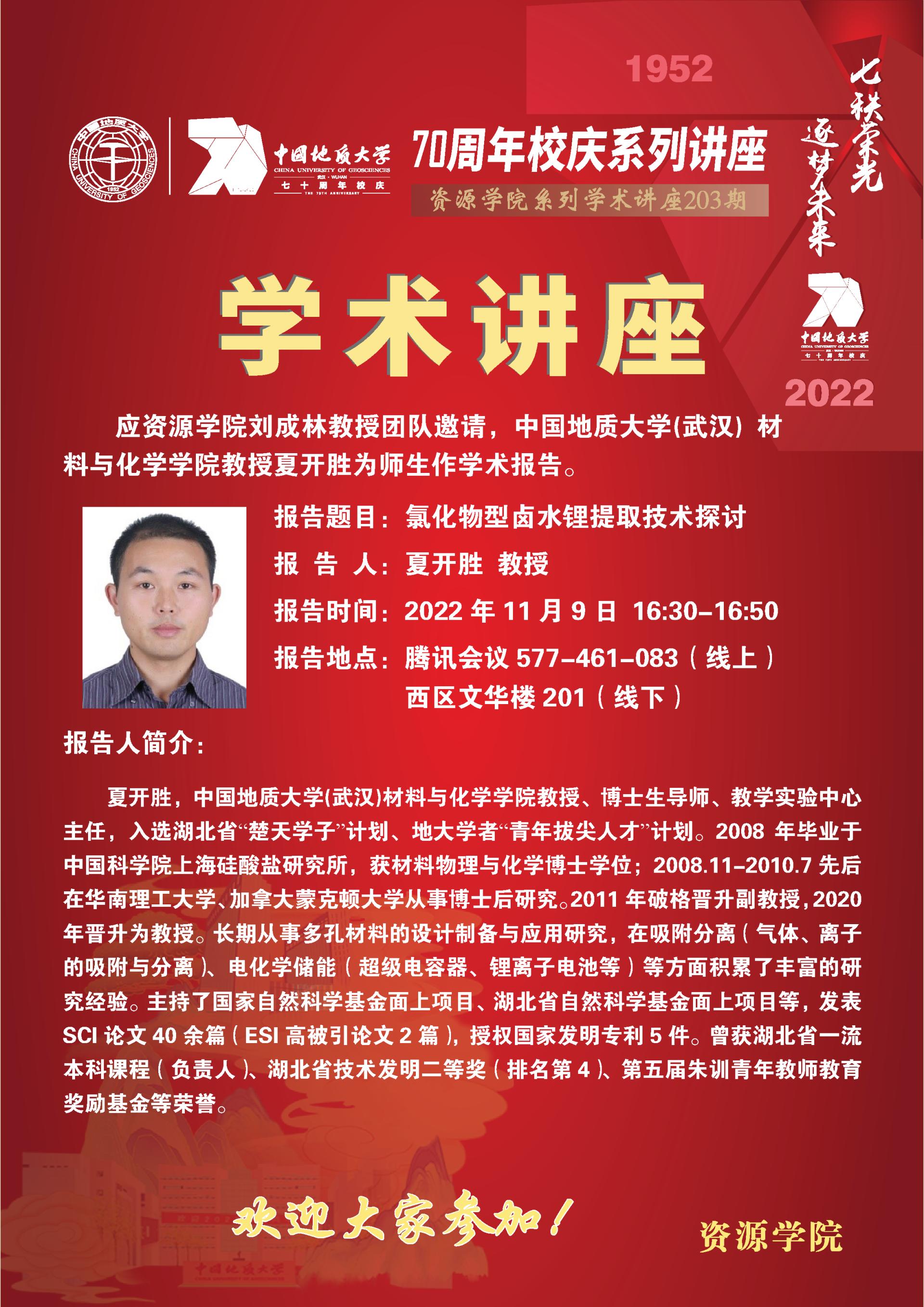 【11月9日】第203期资源学术论坛:夏开胜学术报告