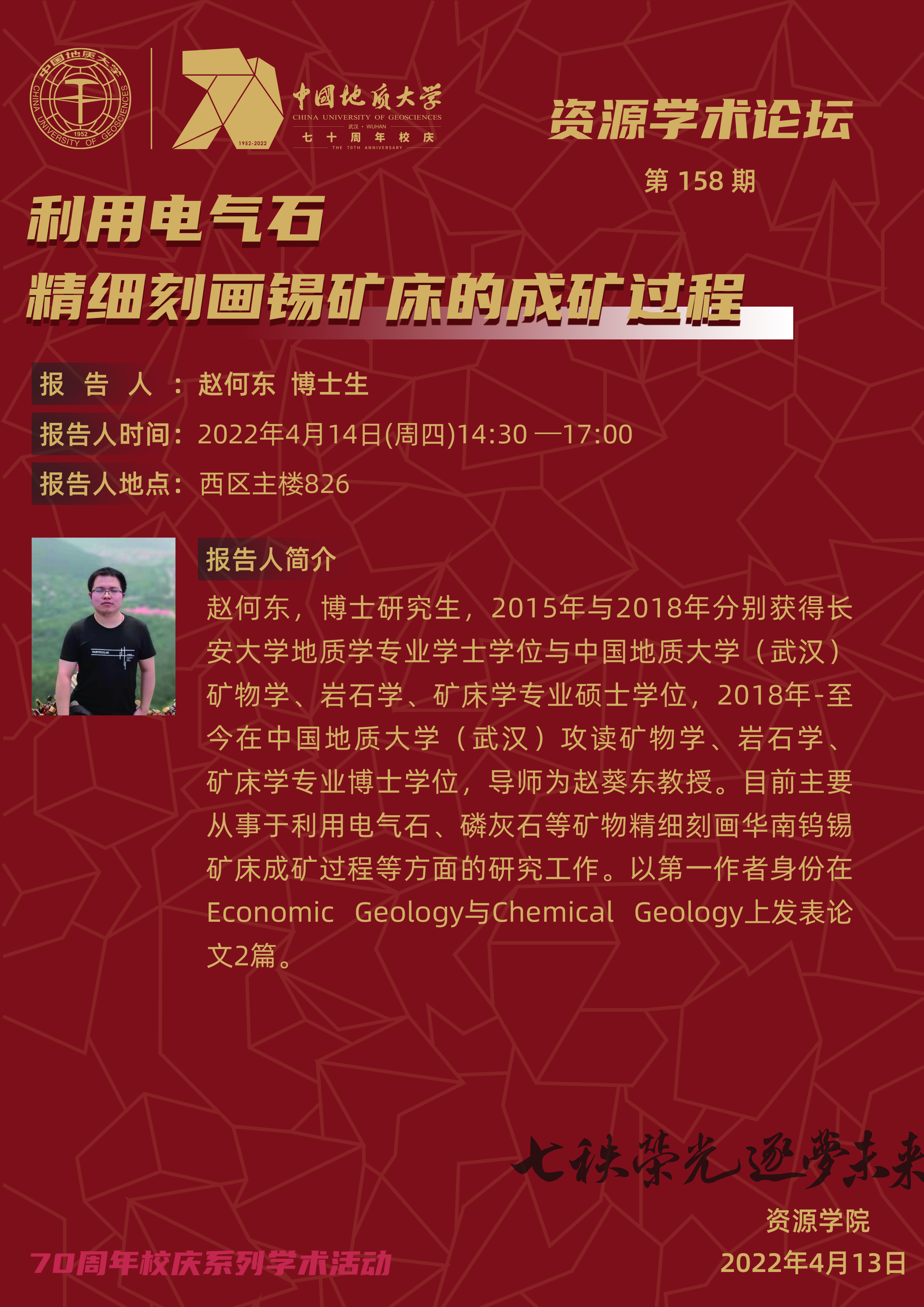 【4月14日】第158期资源学术论坛:赵何东学术报告