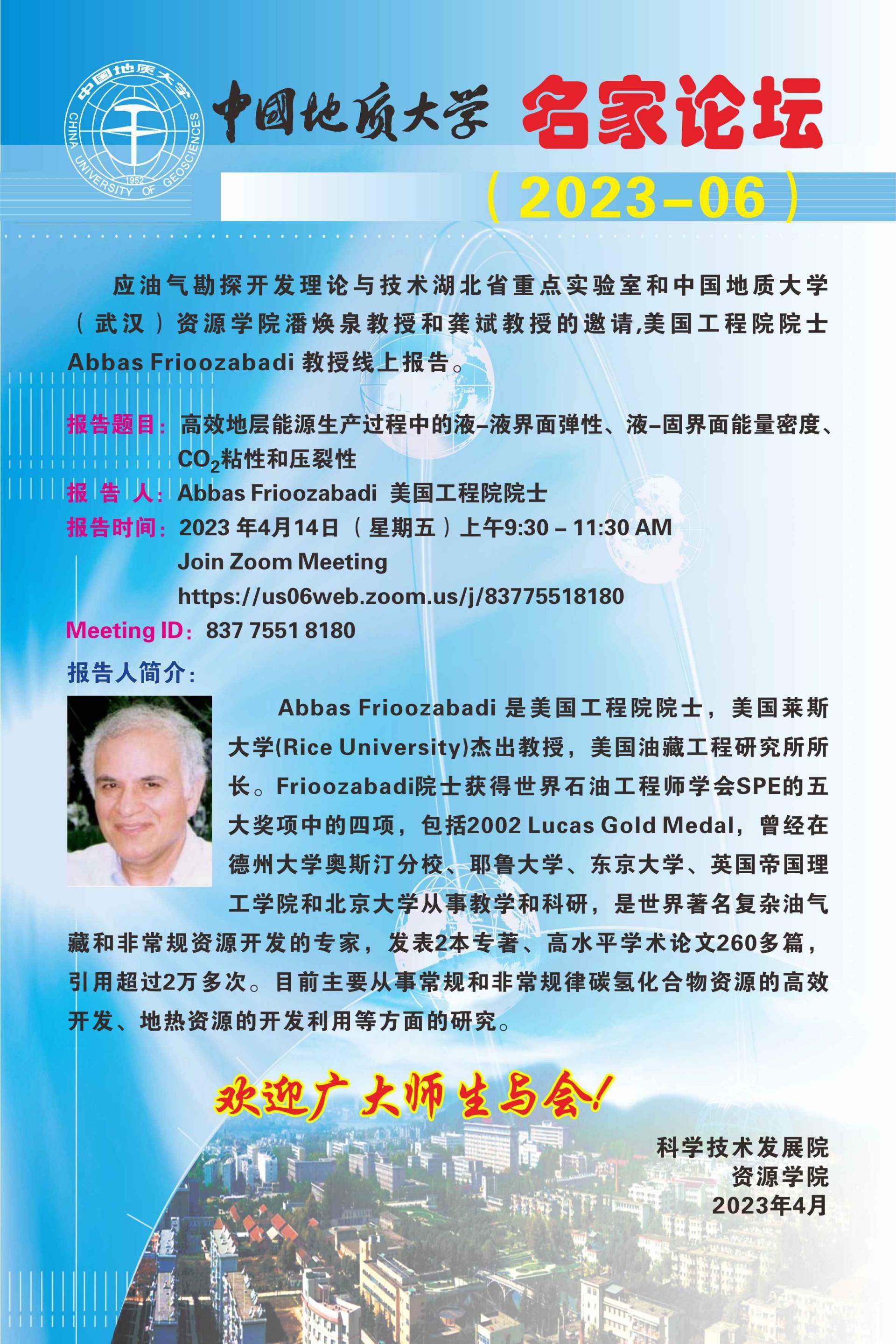 【4月14日】名家论坛2023-06期Abbas Frioozabadi学术报告