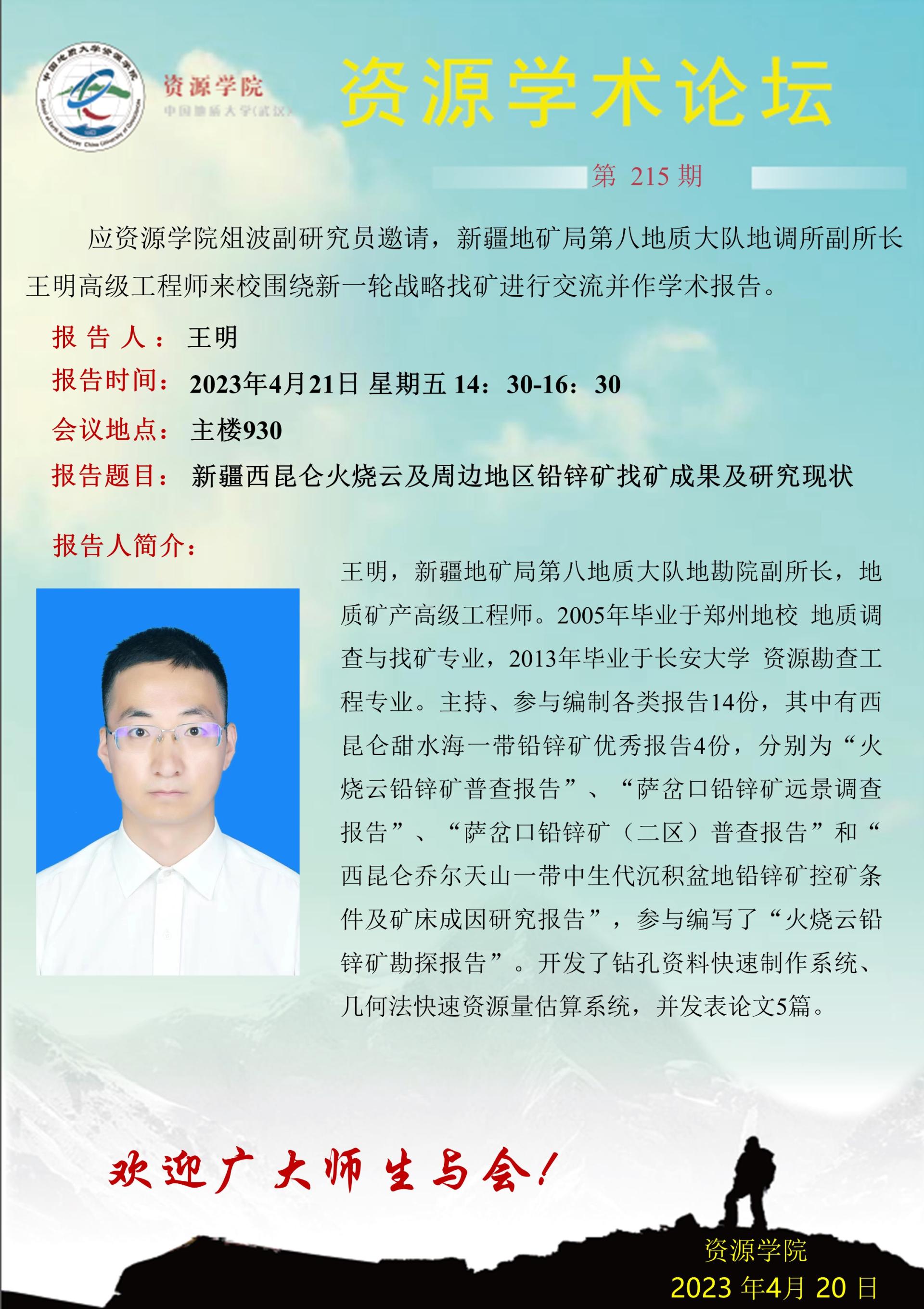 【4月21日】第215期资源学术论坛:王明学术报告