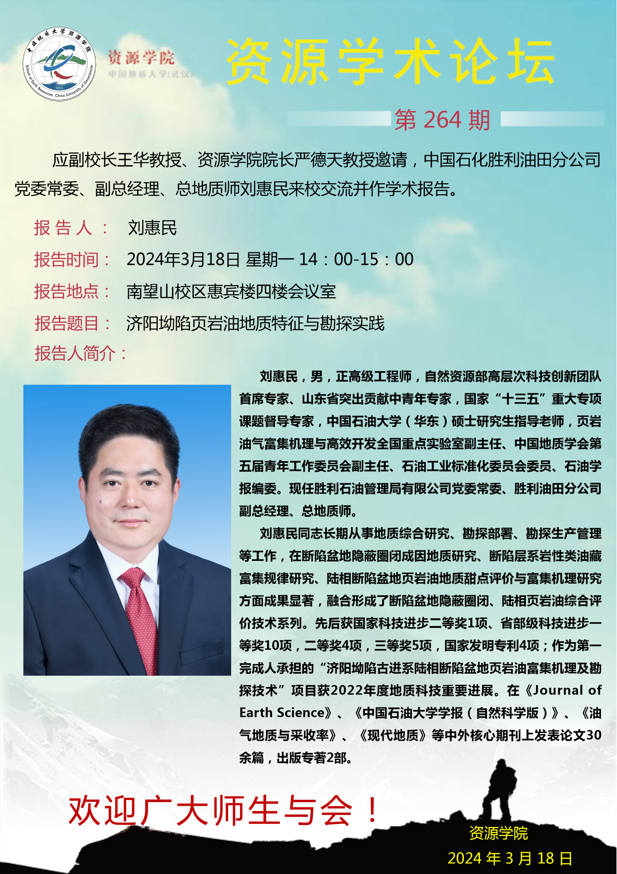 【3月18日】第264期资源学术论坛:刘惠民学术报告