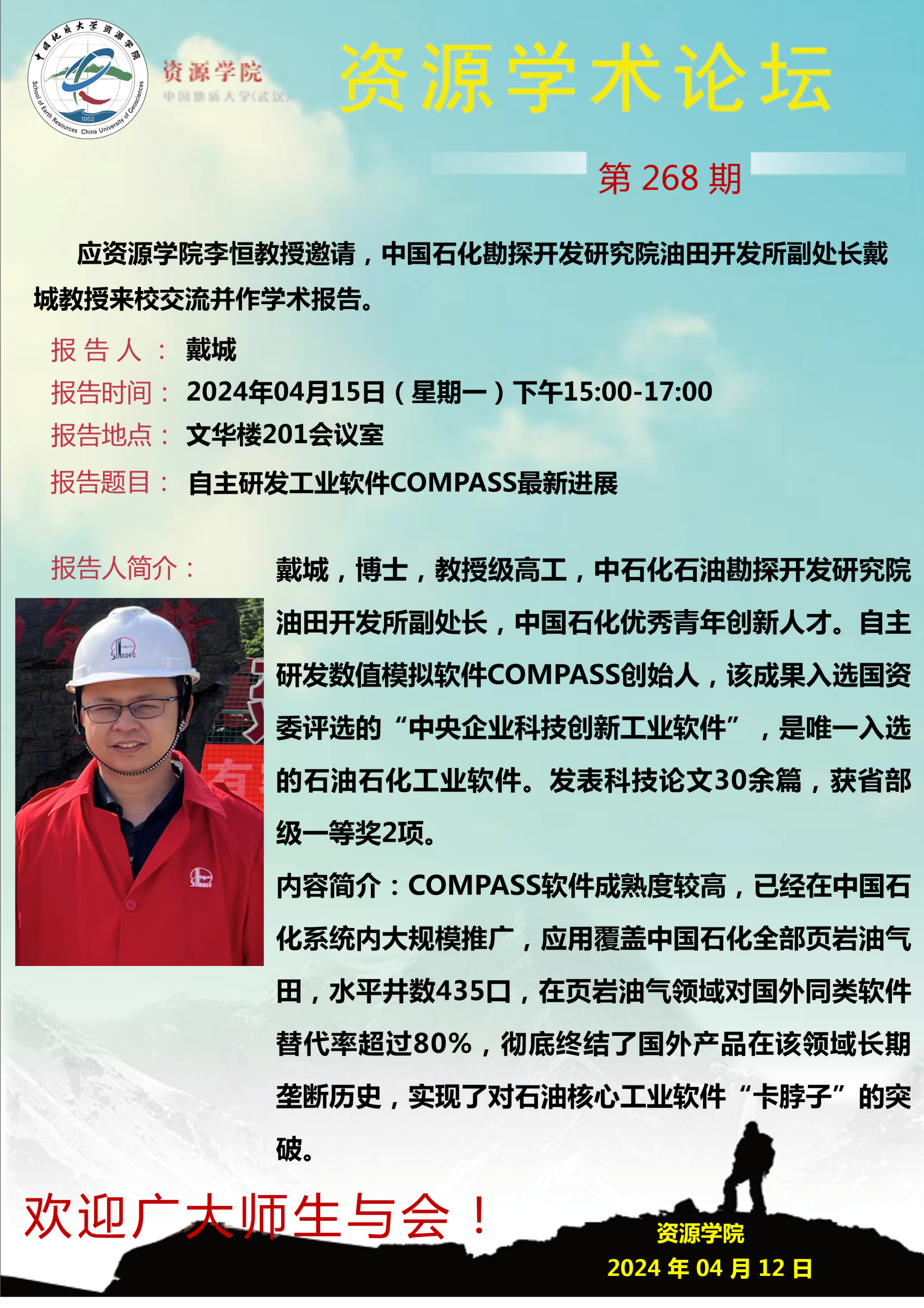 【4月15日】第268期资源学术论坛:戴城学术报告