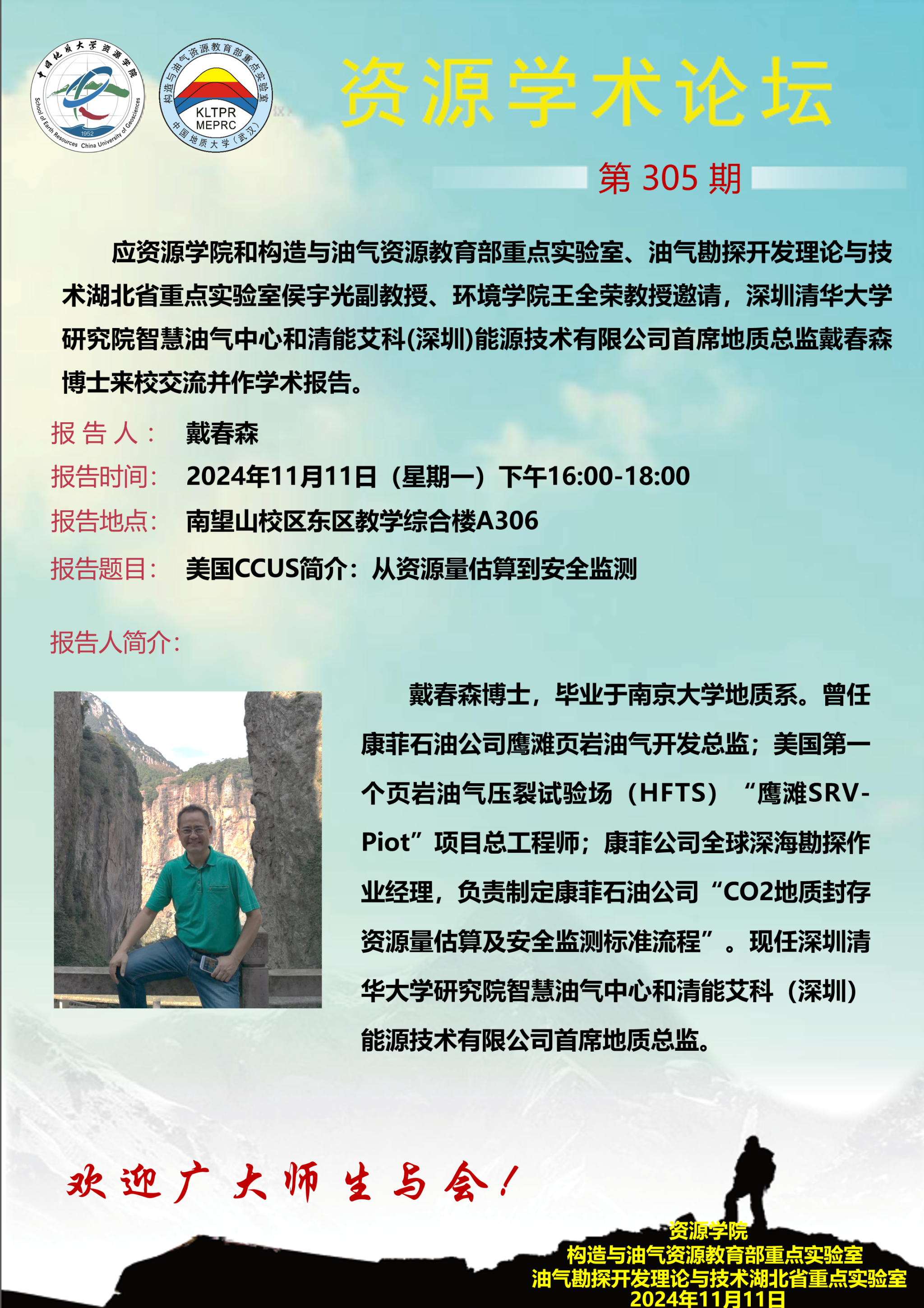 【11月11日】第305期资源学术论坛:戴春森学术报告