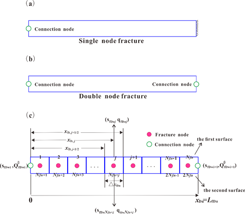 许多裂缝可能存在于碳酸盐岩、页岩、砂砾岩、火山岩和其他坚硬岩层中。裂缝与地层间具有强非均质性,呈现双孔介质特征,精确描述裂缝与基质间的流体交换是认识裂缝导流作用的关键。目前,模拟裂隙性地层内流体流动的主要方法是双孔介质模型结合数值模拟,但是该手段存在如下三方面问题:(1)随着裂缝-地层间非均质性增加,数值模型的计算误差将放大,甚至算法无法收敛;(2)数值方法依靠网格化处理,将产生巨大数据体,计算速度缓慢,且难以刻画复杂形态裂缝形态;(3)双孔介质模型仅限于特征体元(REV)尺度,无法模拟离散性裂缝网络。针对以上科学问题,性吧 湖北省勘探开发理论与技术重点实验室与性吧 “油气藏渗流力学与数值模拟”团队特任教授王磊及其合作者提出了一种在Laplace空间耦合地层流动和裂缝流动的模型,该模型地层流动采用解析求解,因此在地层中不需要划分复杂的结构及非结构网格就可显示表达裂缝特征,大大节省了计算量,裂缝模型对Fredholm方程进行数值离散,在裂缝壁面通过流量-压力相等条件进行耦合,因此称为半解析模型,对于裂缝交叉点提出了自适应物质平衡方程,因此不需要判断裂缝交叉点流体流动方向,建立一种自动升尺度精确模拟裂缝的方法。该研究系统分析了离散裂缝网络压力动态变化特征,方法的提出为后续离散裂缝储层试井分析及产能评价工作奠定理论基础。