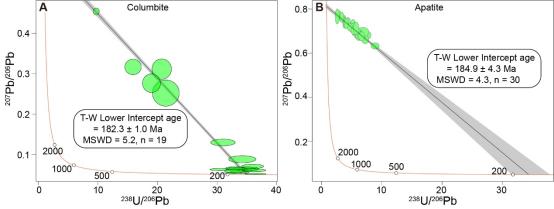 图2可可托海坑底球状花岗岩铌钽铁矿及磷灰石U-Pb定年结果