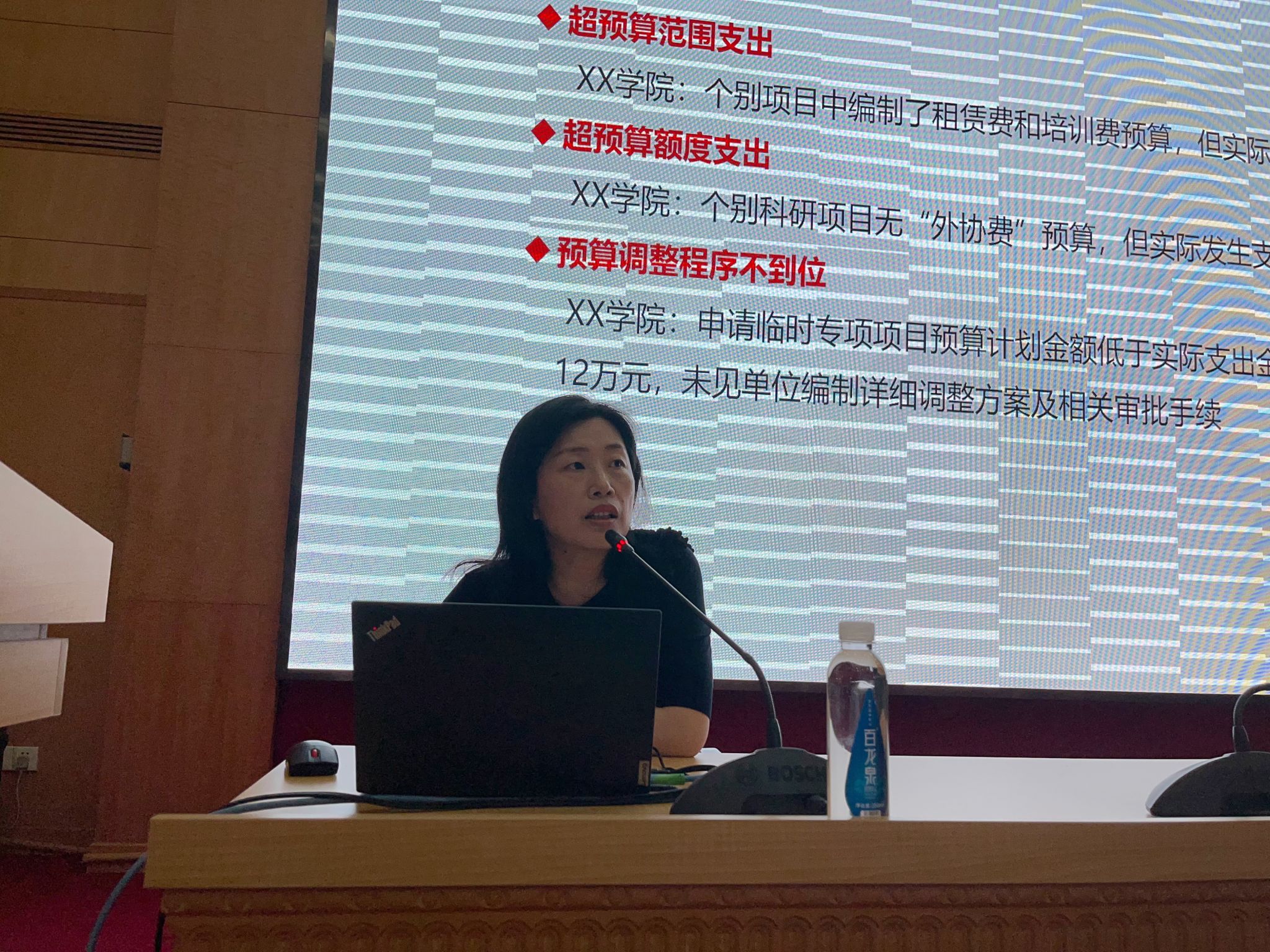 学校审计处处长孙雅静做“从审计视角看高校科研经费管理”的专题辅导报告。她结合典型案例详细介绍了经济责任审计新内涵、经济责任审计关注的七大问题、学院经济责任审计中的常见问题以及科研经费管理中的常见问题。她指出,高校科研人员应正确合理使用科研经费,提高经费使用效率,让经费真正服务于科学研究。