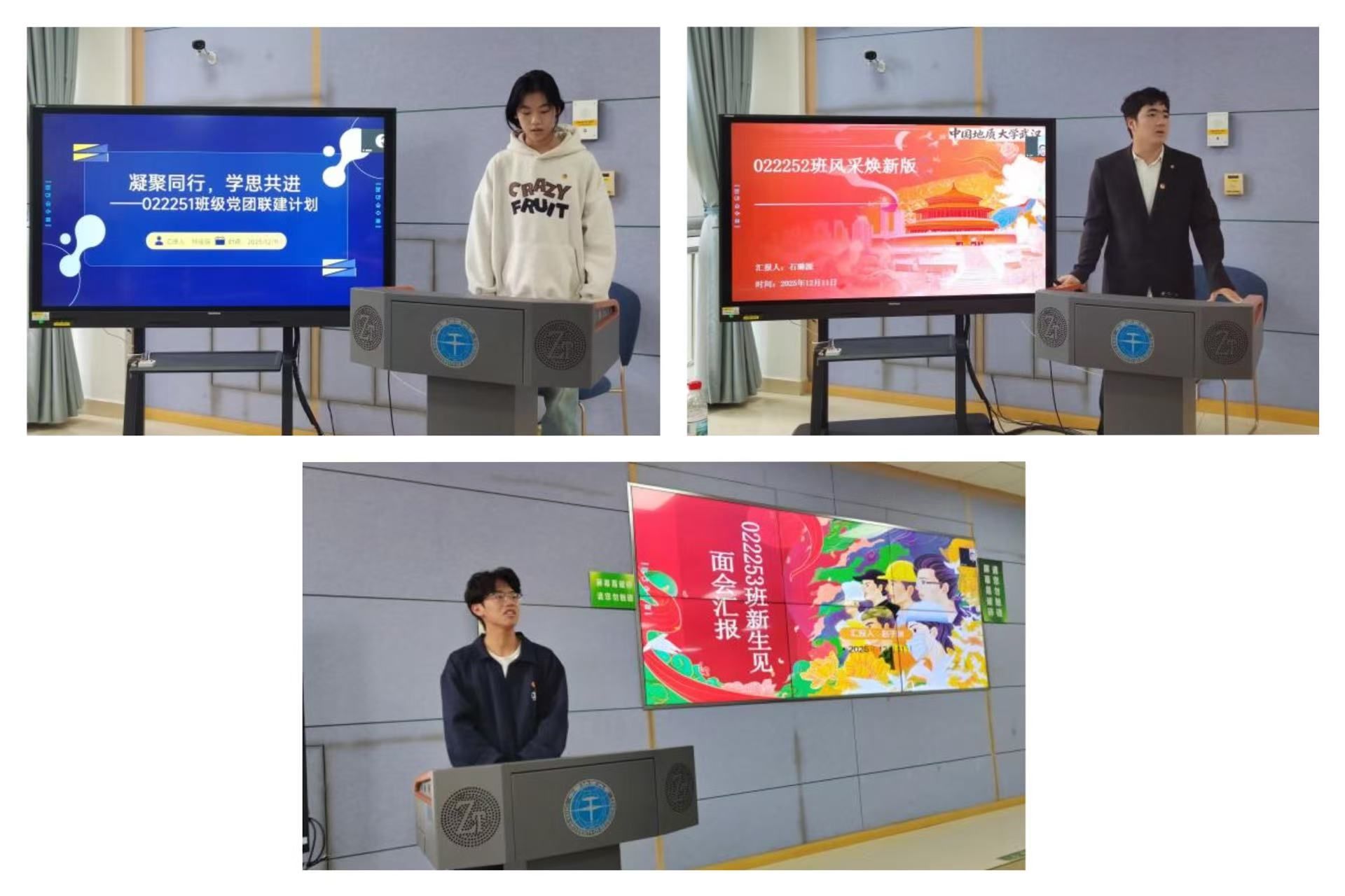 2025级石油工程班级团支书介绍和党团联建方案。刘瑶瑶、石璐源、赵子渊三个班级团支书分别从成员构成、学习情况、班级活动和班级文化等方面介绍班级性吧情况