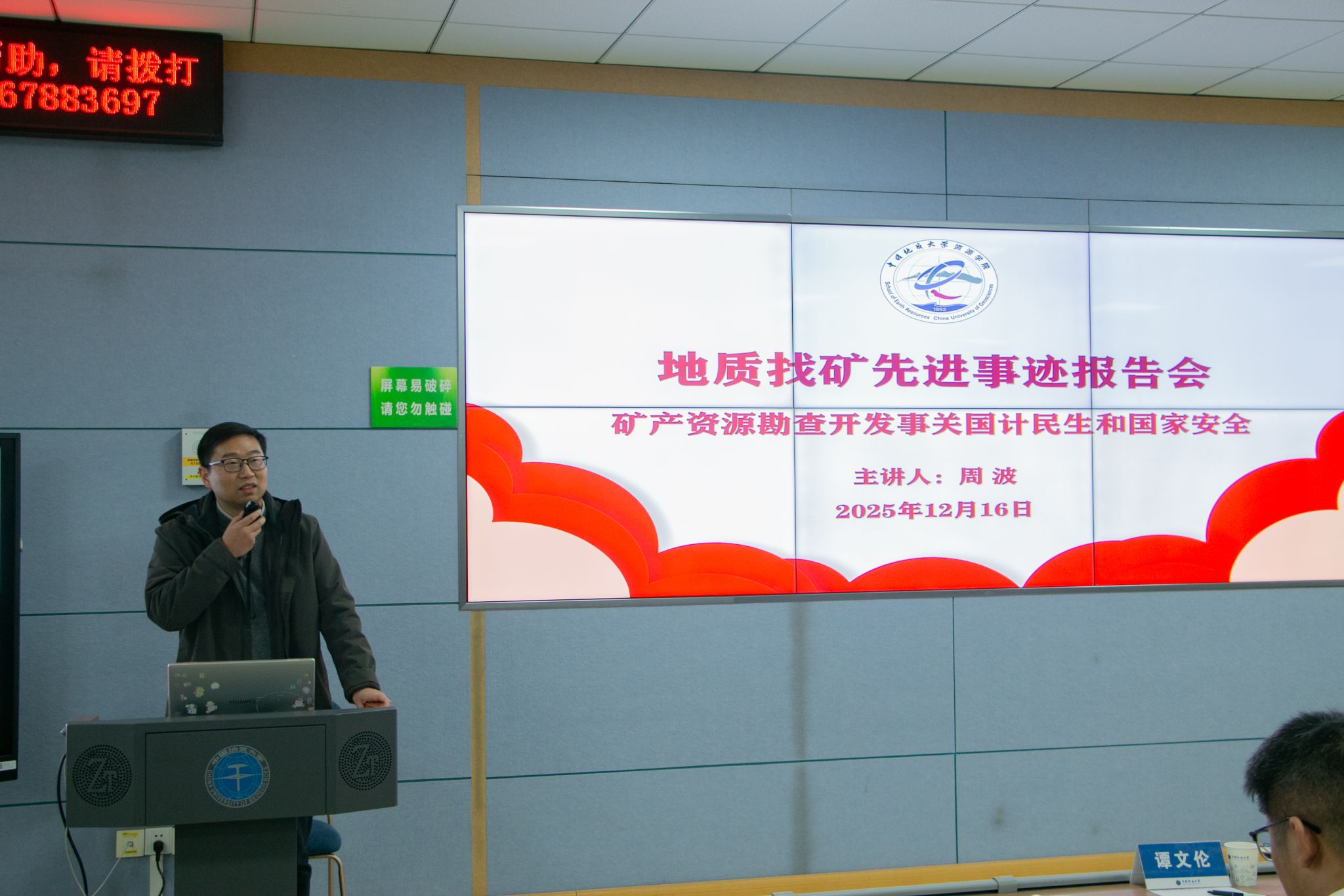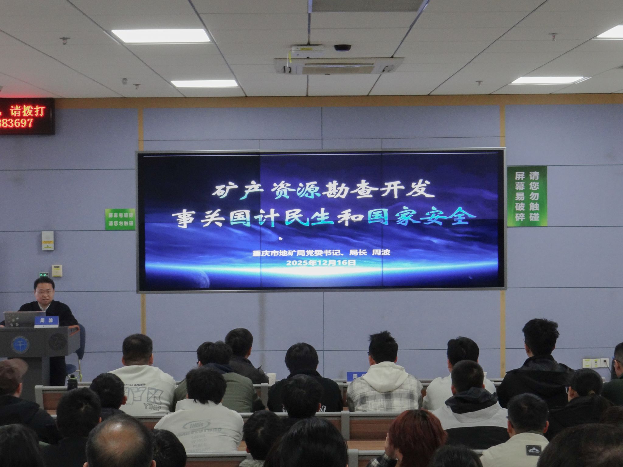为弘扬地质工作优良传统,引导青年学子树立专业报国志向、明晰行业发展方向,12月16日,性吧 于东教C座C0206教室举办2025年秋季学期地质找矿先进事迹报告会。重庆市地质矿产勘查开发局党委书记、局长周波受邀主讲,重庆市地质矿产勘查开发局相关领导、专家,性吧 党委副书记谭文伦,辅导员彭鑫、陈宇及学生代表参会。谭文伦主持会议。