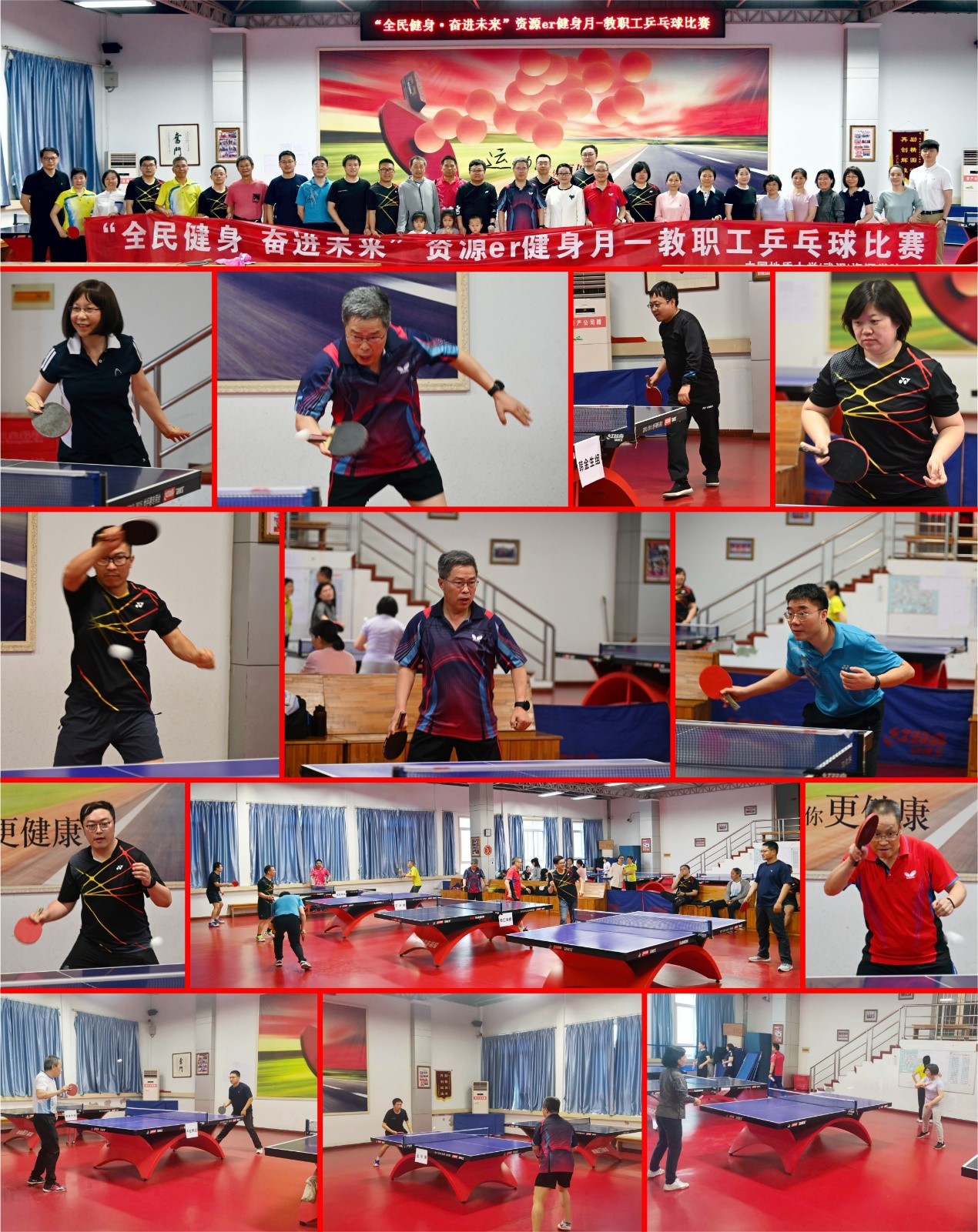 分工会在校工会三楼乒乓球馆举行“全民健身 奋进未来”资源er健身月—教职工乒乓球比赛活动。校工会常务副主席郭秀蓉、学院党委书记高复阳出席了开幕式。