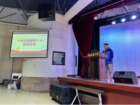 公共管理学院志愿服务团队李翊政以“青春·真情”的志愿底色为基点,着重介绍了“1+4+10”部门发展模式,生动地讲述了协会开展应急救援科普、疫情防护口罩分发、发现“身边的雷锋”主题征文等特色品牌活动和校园服务活动场景。