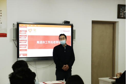 谭文伦对“红星·春晖”关爱老年人志愿服务队的成立表示祝贺,希望同学们发扬志愿服务精神,耐心细致地与老年人沟通,积极向离退休教师学习,在传承“五老”精神中树立远大目标,在爱心奉献中锤炼本领、增长才干。