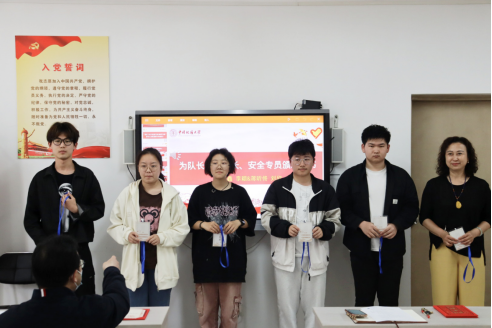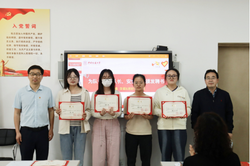 齐世学、谭文伦为志愿服务队队长、副队长、安全专员颁发聘书。
