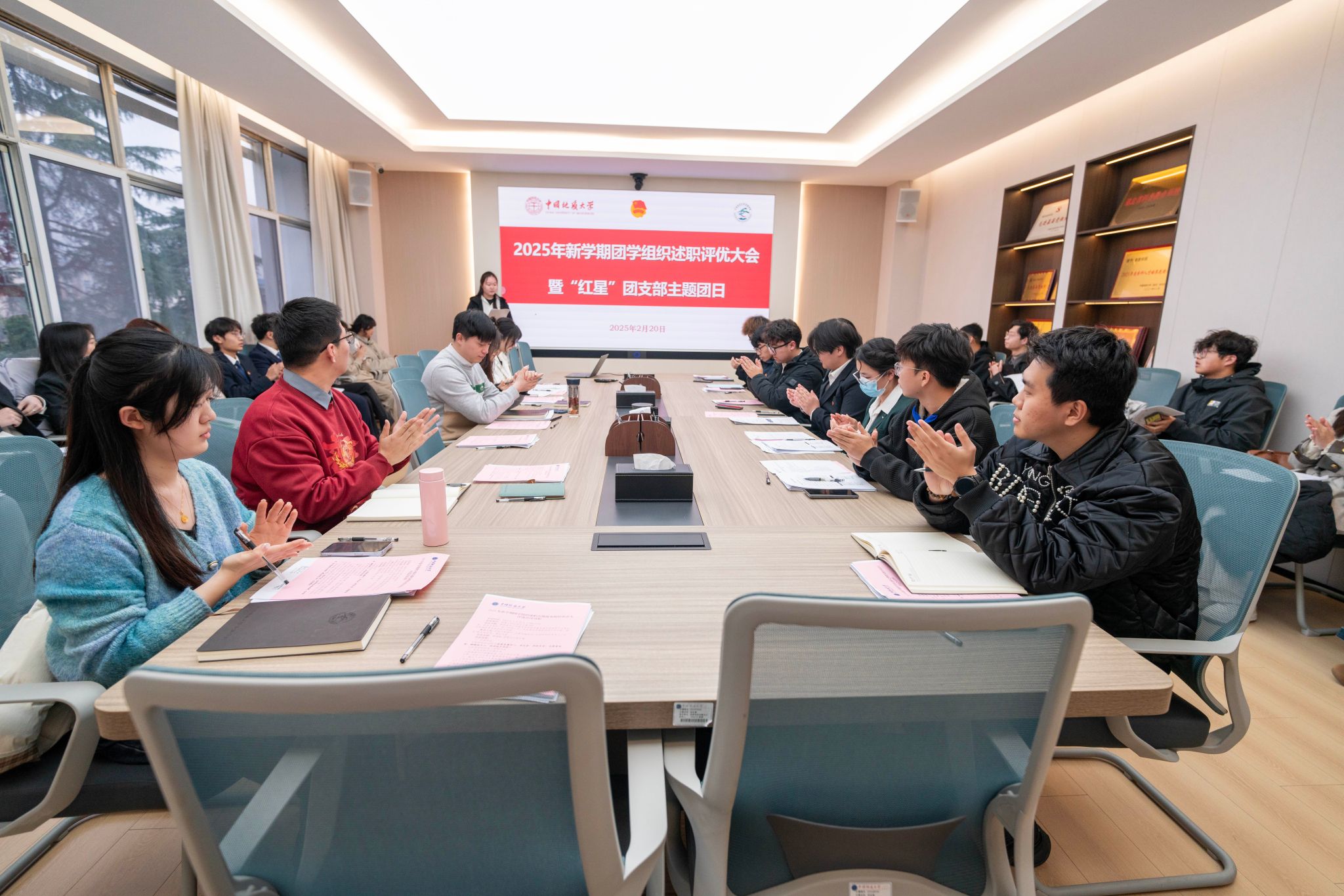 举行新学期团学组织述职评优大会暨“红星”团支部主题团日活动。学院专职团干、专兼职辅导员,各团学组织主要负责人、部门负责人,“红星”团支部成员,学生代表参加会议。会议由团委办公室韩婧暄主持。
