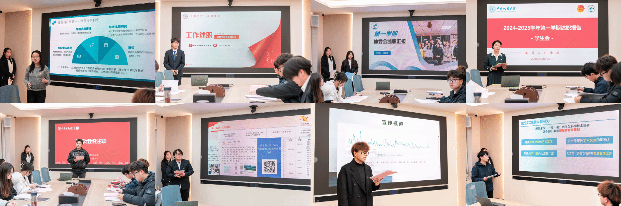 会议举行述职评优。团委直属部门、学生会、研究生会、“红星”青年志愿者协会、融媒体中心、“源创”大学生科学技术协会主要负责人及部门负责人从组织建设、工作进展、工作成效、现阶段存在的问题及改进方向全面介绍了过去一学期的工作情况和个人成长收获。
