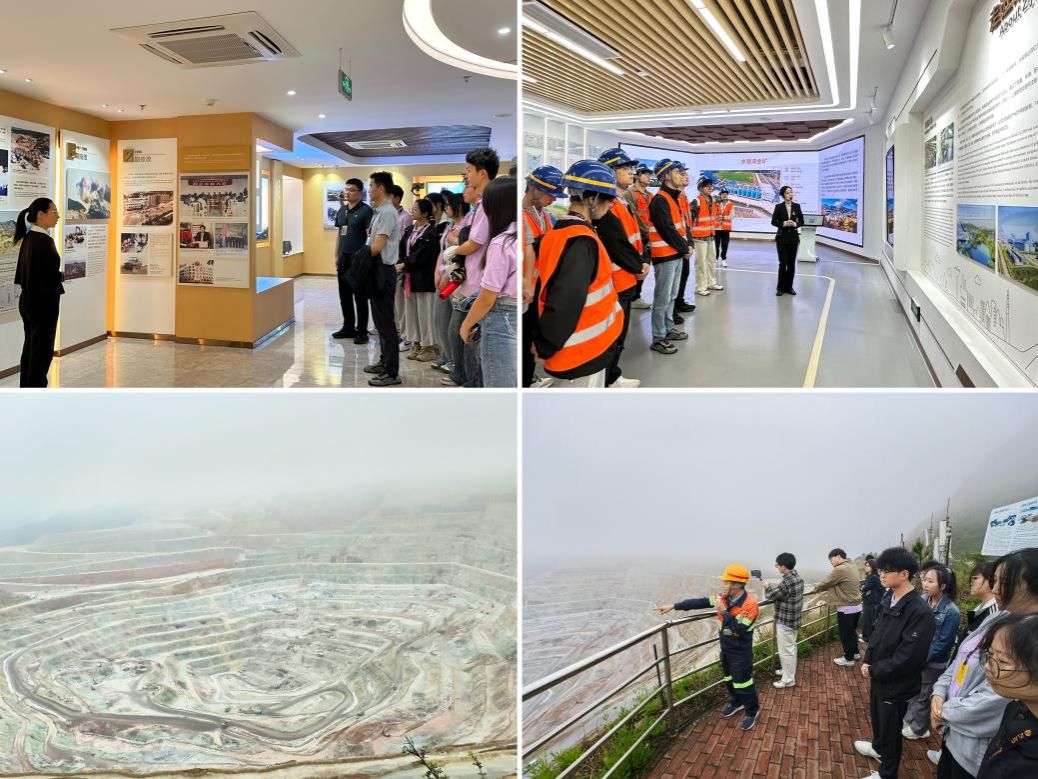 同学们走进紫金性吧馆,了解紫金矿业的发展历程;深入紫金山金铜矿,实地参观地质勘查、采矿作业环节
