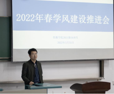2021级本科生学风建设推进会召开,辅导员霍少孟,兼职辅导员田雪,“李四光计划”学员、022201班鲁豫,021206班陈宇,2021级全体本科生参加会议。会议采取线上线下方式进行,年级工作组明萌主持会议。