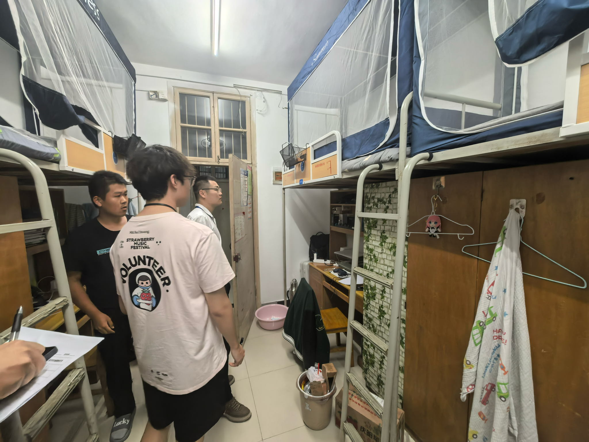 宿舍安全问题同样也不容忽视。评委小组的带队老师们指出了部分宿舍将插排接到床上、楼道东西过多导致消防通道堵塞等存在安全隐患的行为,老师的提醒提高了同学们的安全意识与防火意识。