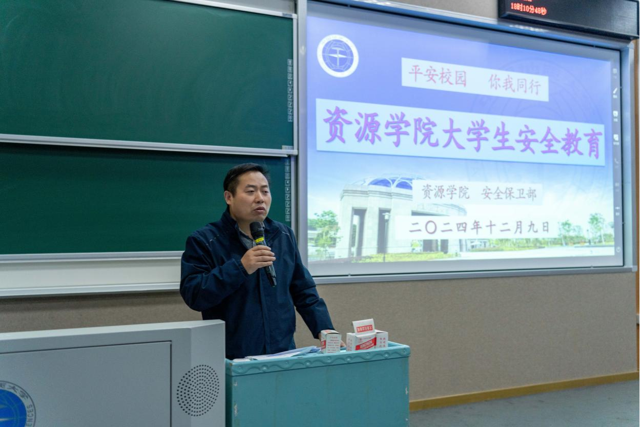 安全保卫部法律援助办魏景明作安全教育授课。他结合真实案例介绍了交通安全、消防安全、反诈安全的注意事项,强调了冬季校园安全的潜在风险,希望同学们提高警惕,时刻紧绷安全之弦,共创安全和谐校园。