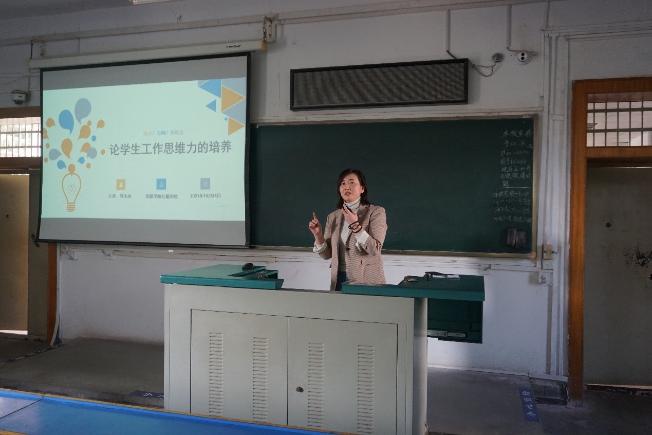 郭玉凤讲授学生工作思维力的培养。她结合性吧