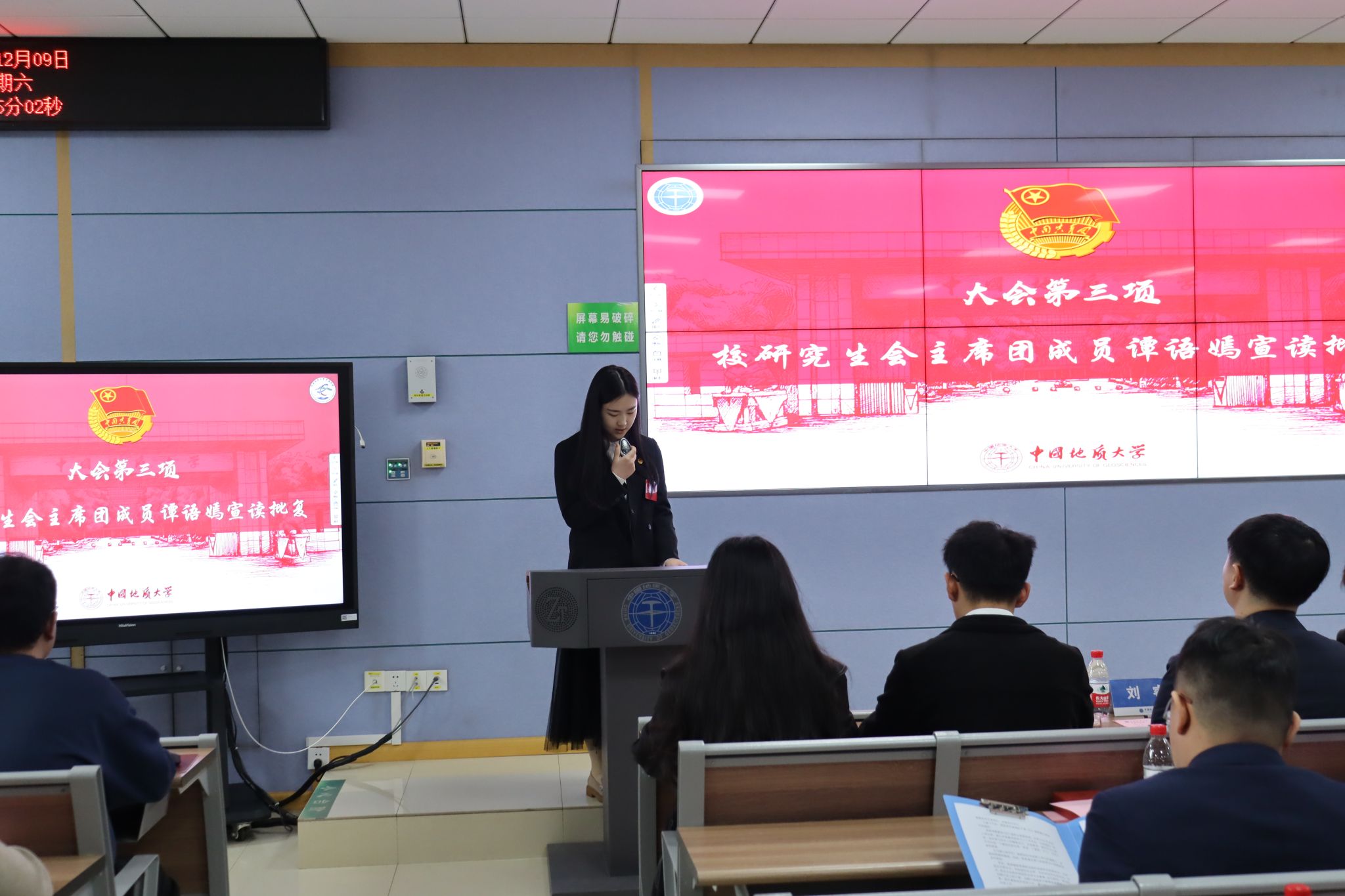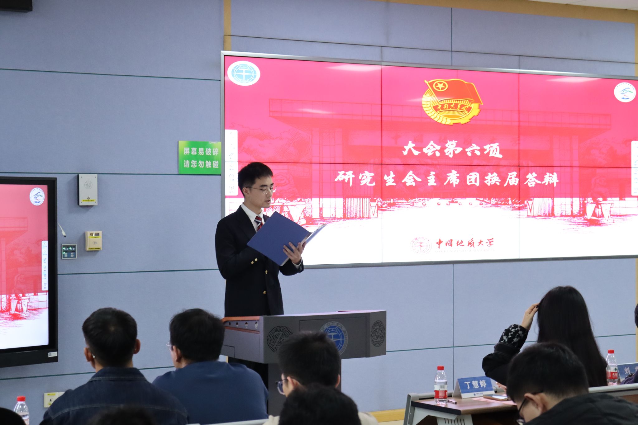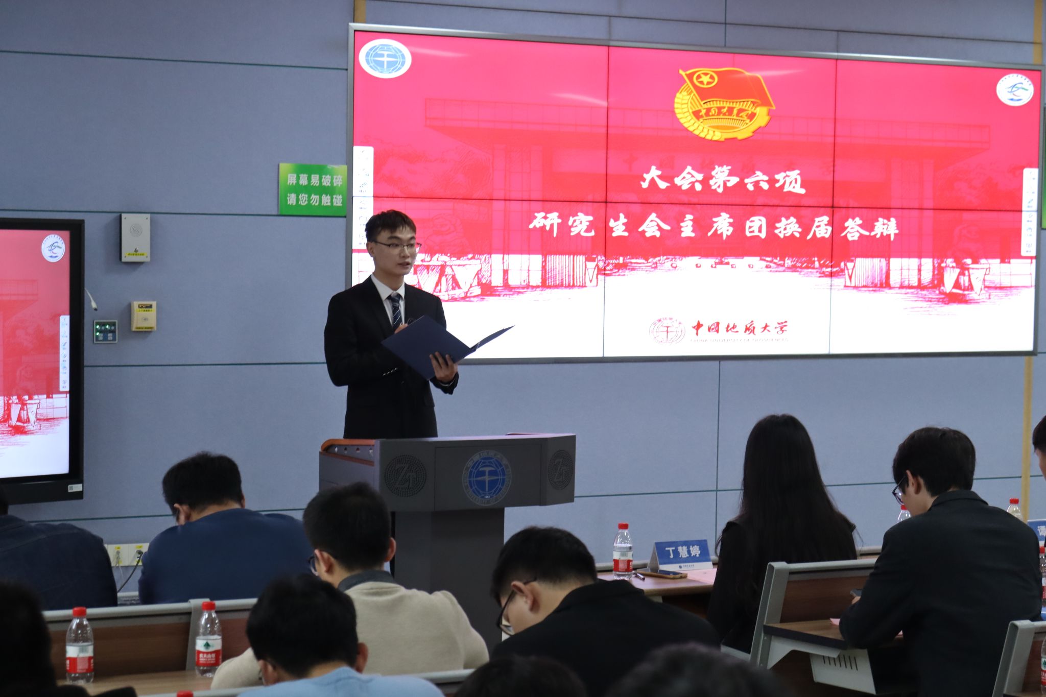 第十二次研究生代表大会在南望山校区东区教学综合楼C0205教室顺利召开。学院党委副书记谭文伦,学校研究生会主席团成员谭语嫣,学院团委副书记刘睿,地球科学学院研究生会执行主席栗千贺,艺术与传媒学院研究生会执行主席彭飞仪以及研究生代表参加会议。会议由大会执行主席林清主持。