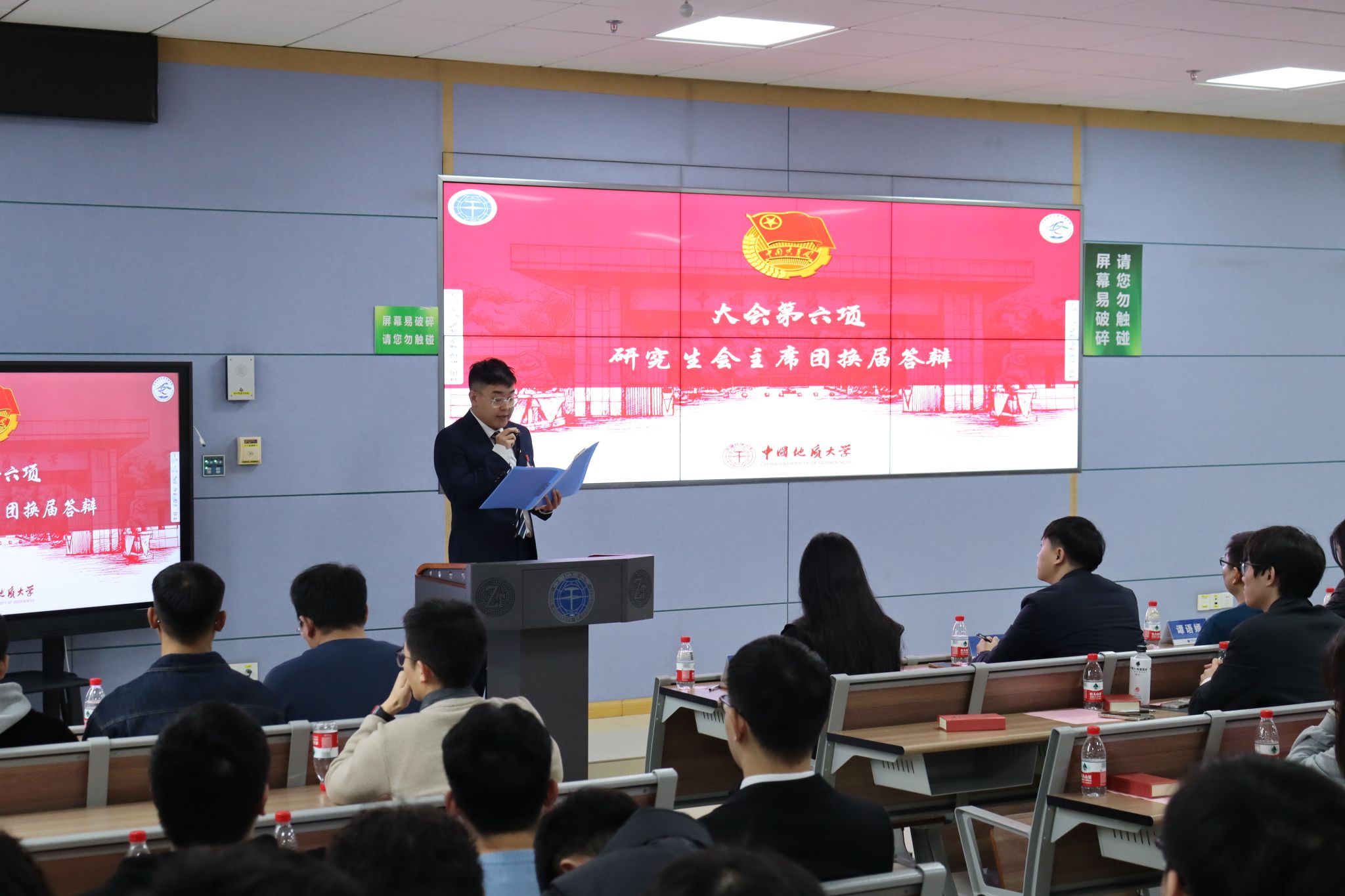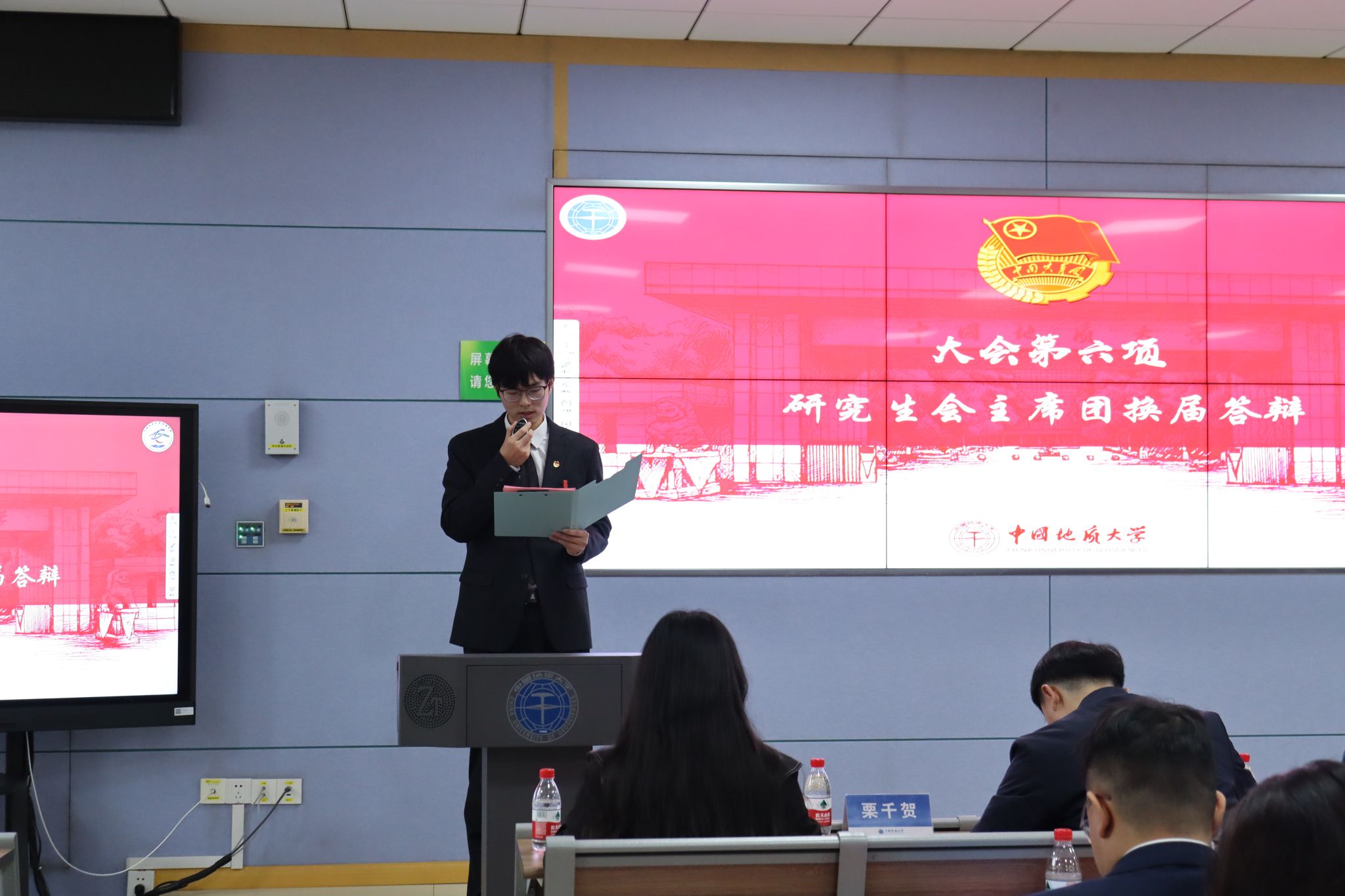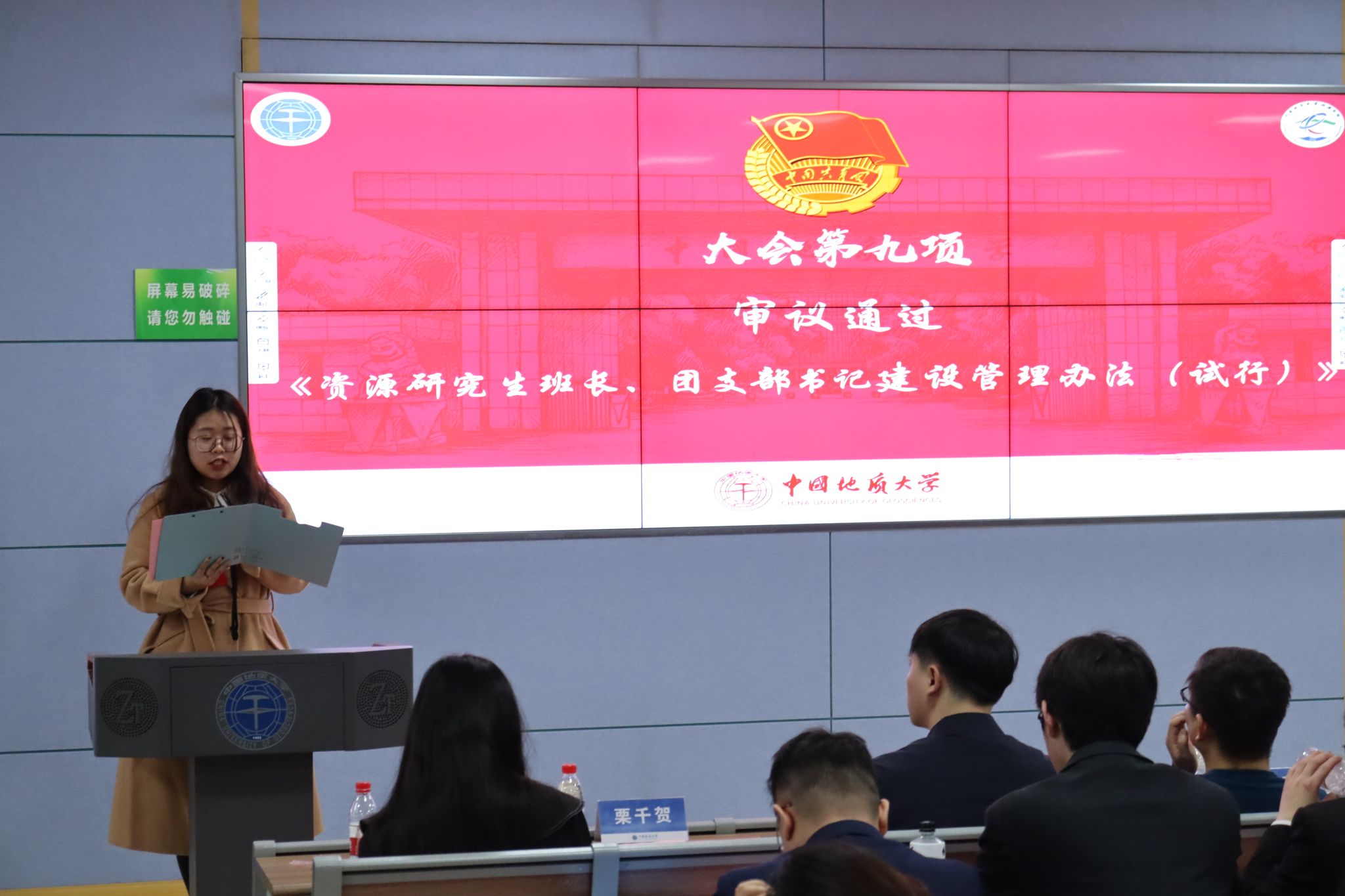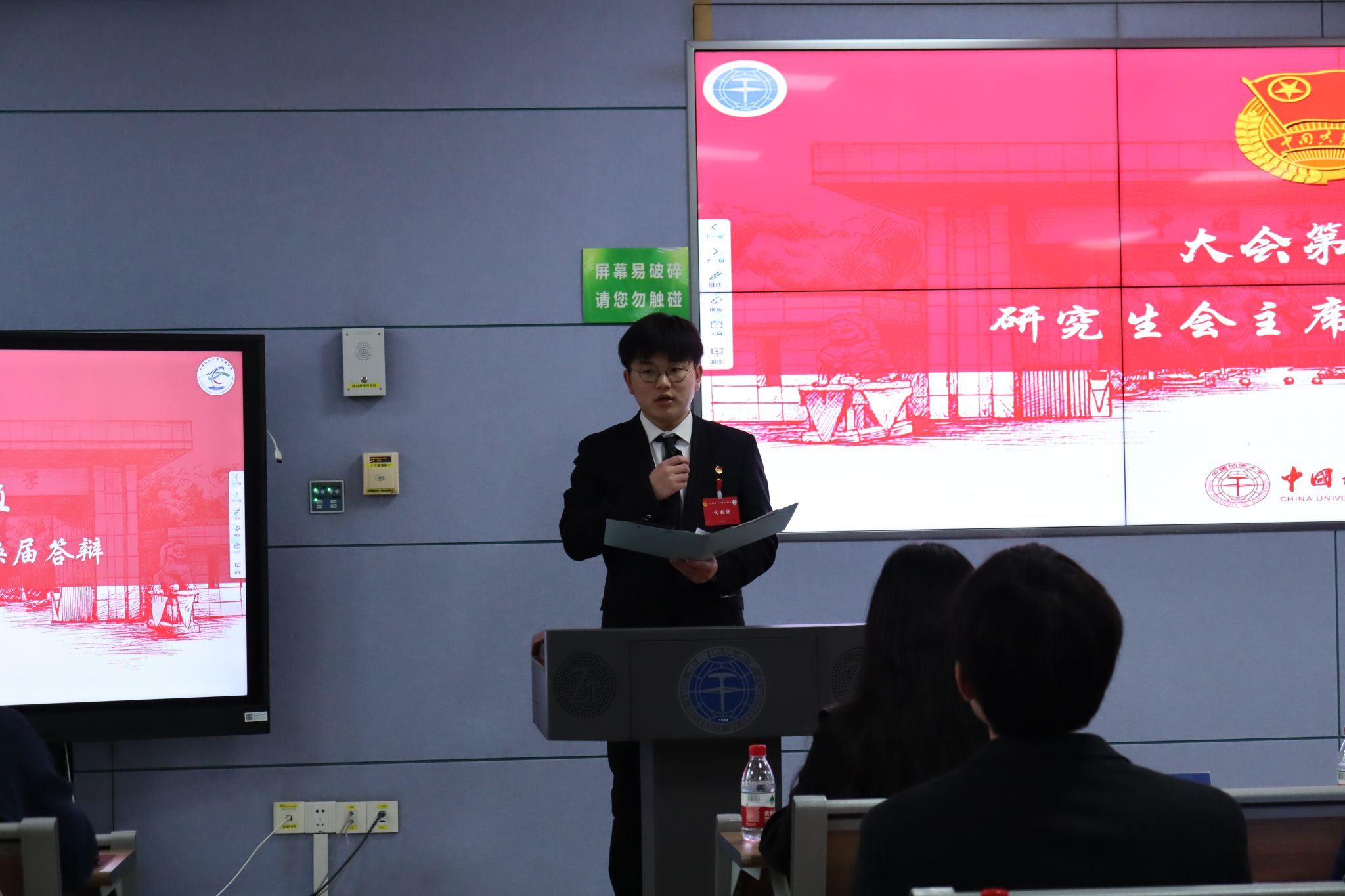 第十二次研究生代表大会在南望山校区东区教学综合楼C0205教室顺利召开。学院党委副书记谭文伦,学校研究生会主席团成员谭语嫣,学院团委副书记刘睿,地球科学学院研究生会执行主席栗千贺,艺术与传媒学院研究生会执行主席彭飞仪以及研究生代表参加会议。会议由大会执行主席林清主持。
