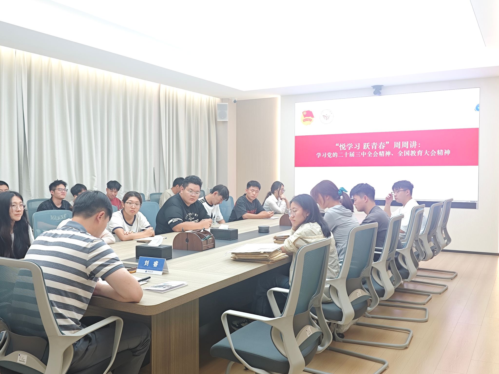 会议举行“悦学习 跃青春”周周讲。与会师生观看相关学习视频,刘睿领学党的二十届三中全会精神、全国教育大会精神。他谈到,全体支部书记要提高政治站位,深入学习相关会议精神,并带领支部成员,夯实支部建设,促进支部成员全面发展。