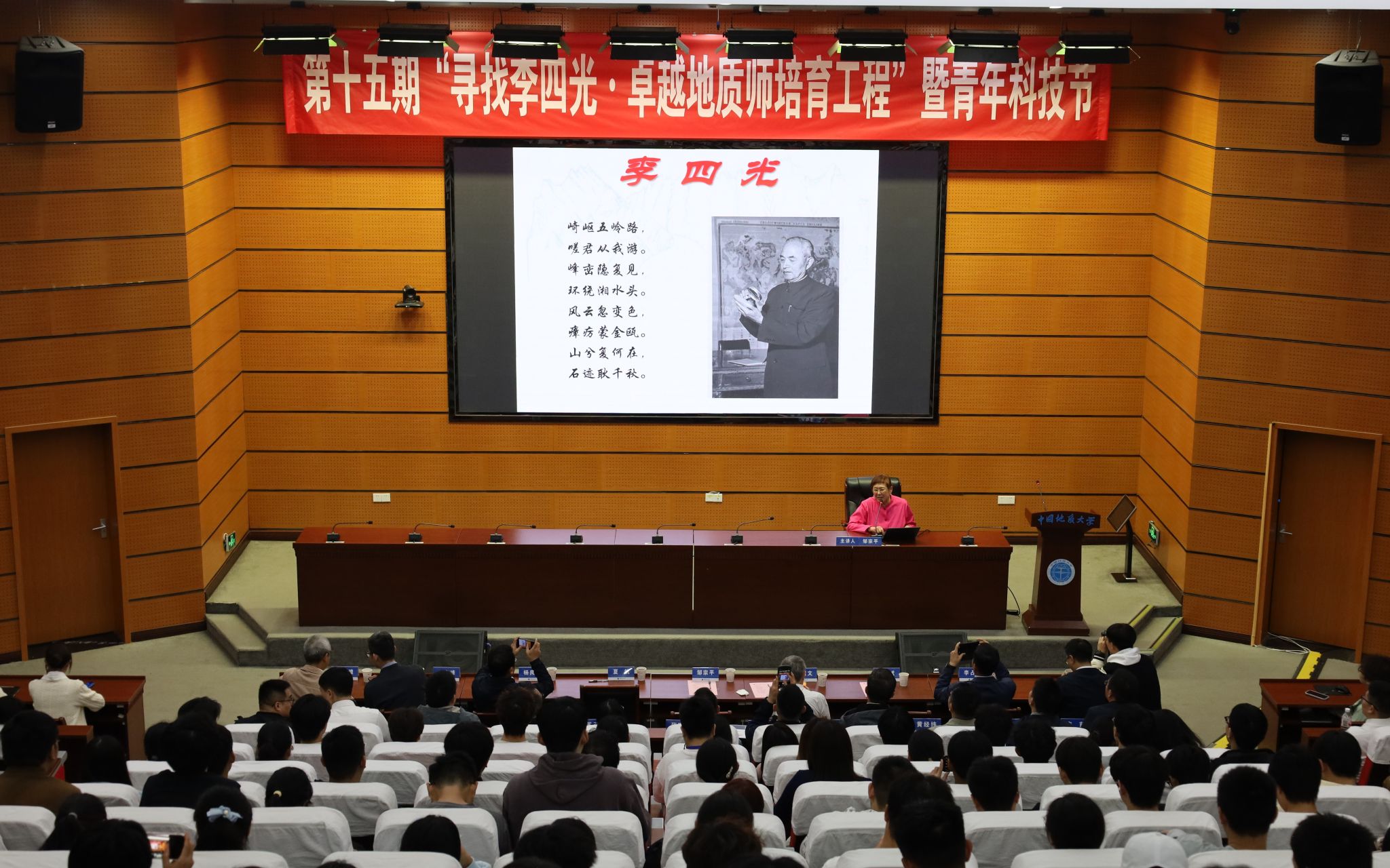 在南望山校区东教楼A0113教室举行第十五期“寻找李四光·卓越地质师培育工程”开幕式暨“李四光精神”报告会。中国科学家精神宣讲团成员、李四光纪念馆高级顾问、李四光先生外孙女邹宗平女士,李四光纪念馆黄启文先生,湖北省李四光研究会副秘书长、湖北省地质科学研究院副院长杨良哲,黄冈市李四光纪念馆办公室主任夏炜,性吧