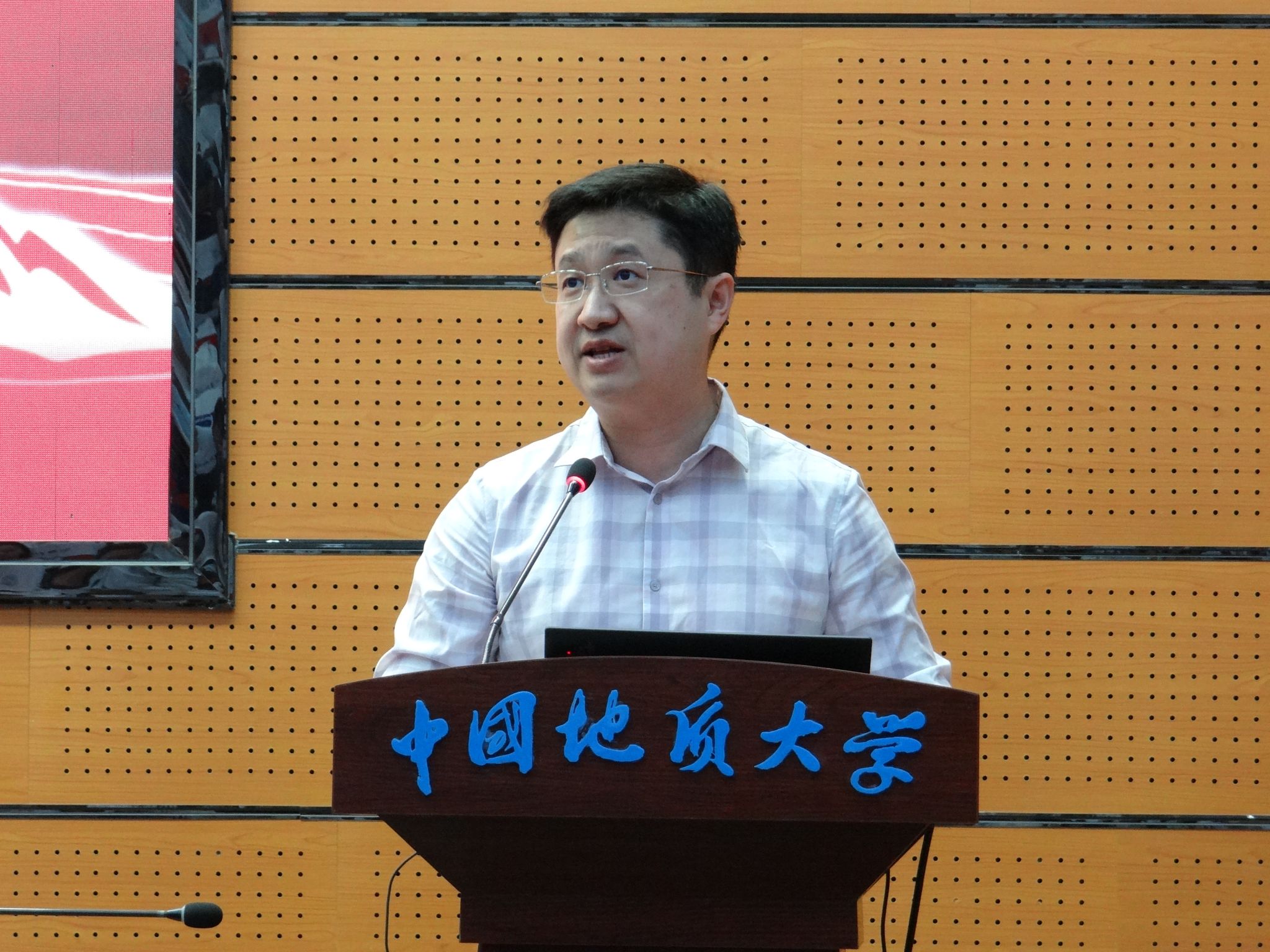 副院长李占轲以“弘扬李四光精神 共育时代新人”为主题,从活动目的及背景、活动简介、活动成效、十五期赛事安排以及创新发展等方面介绍“培育工程”实施情况。他谈到,“培育工程”旨在面向国家需求,弘扬李四光精神,强化专业兴趣,训练专业技能,提升综合素质,培养科研思维,激发报国志向,涵养科学精神,培养新时代地质人。“培育工程”自2011年启动实施以来,坚持守正创新,赛事体系不断完善,赛事成效日益凸显,形成了五位一体的育人品牌,形成了“专创教育”相融合的工作体系,有力促进了学院的教育教学、人才培养高质量发展,完善了“三全育人”工作体系,收获了特色育人成果。