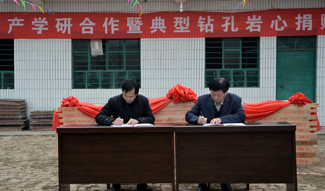 郝芳副校长与中国陕西核工业集团公司签署了战略合作框架协议,在此框架下中陕核集团二一一大队无偿捐赠两口完整钻孔岩芯用以支持性吧