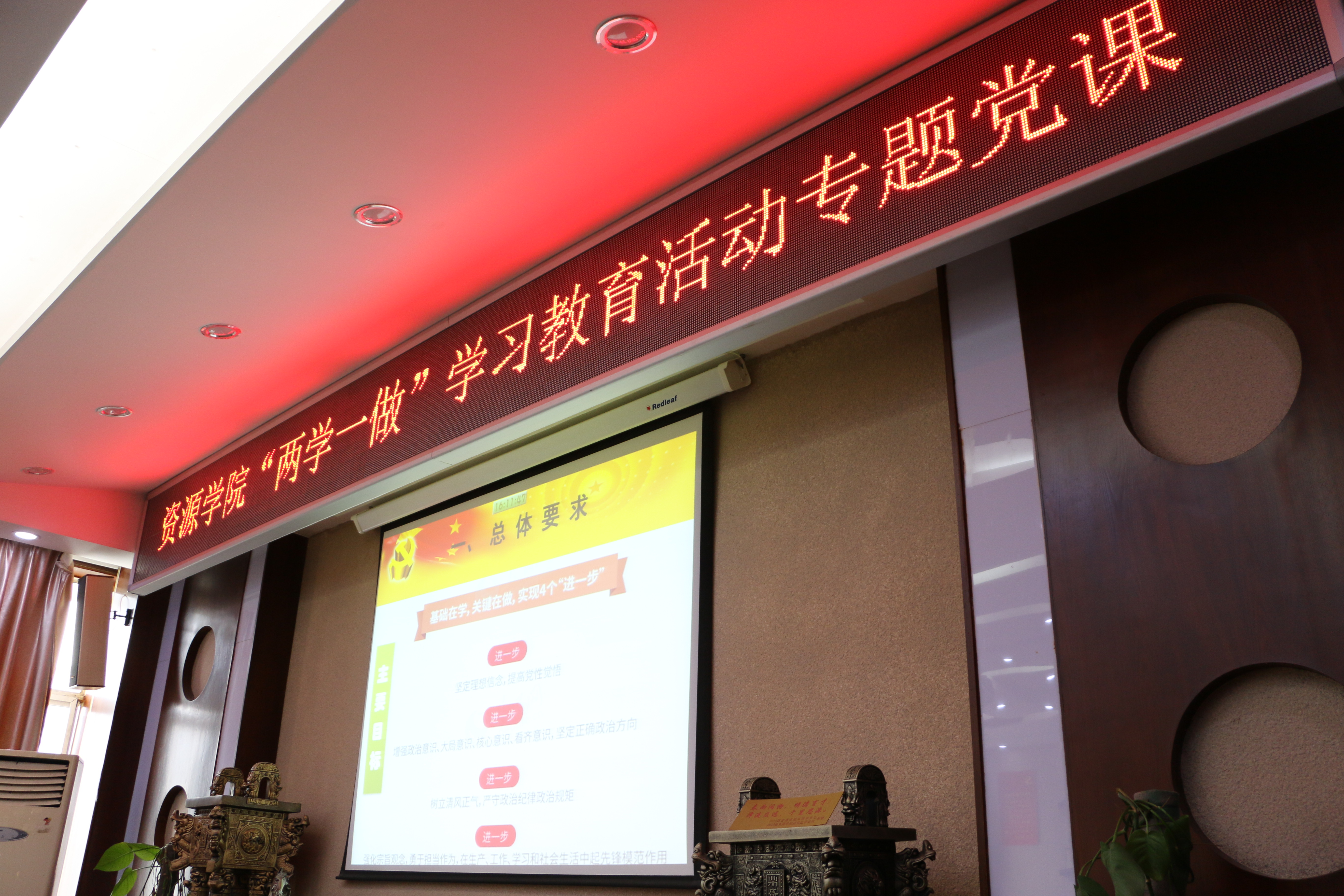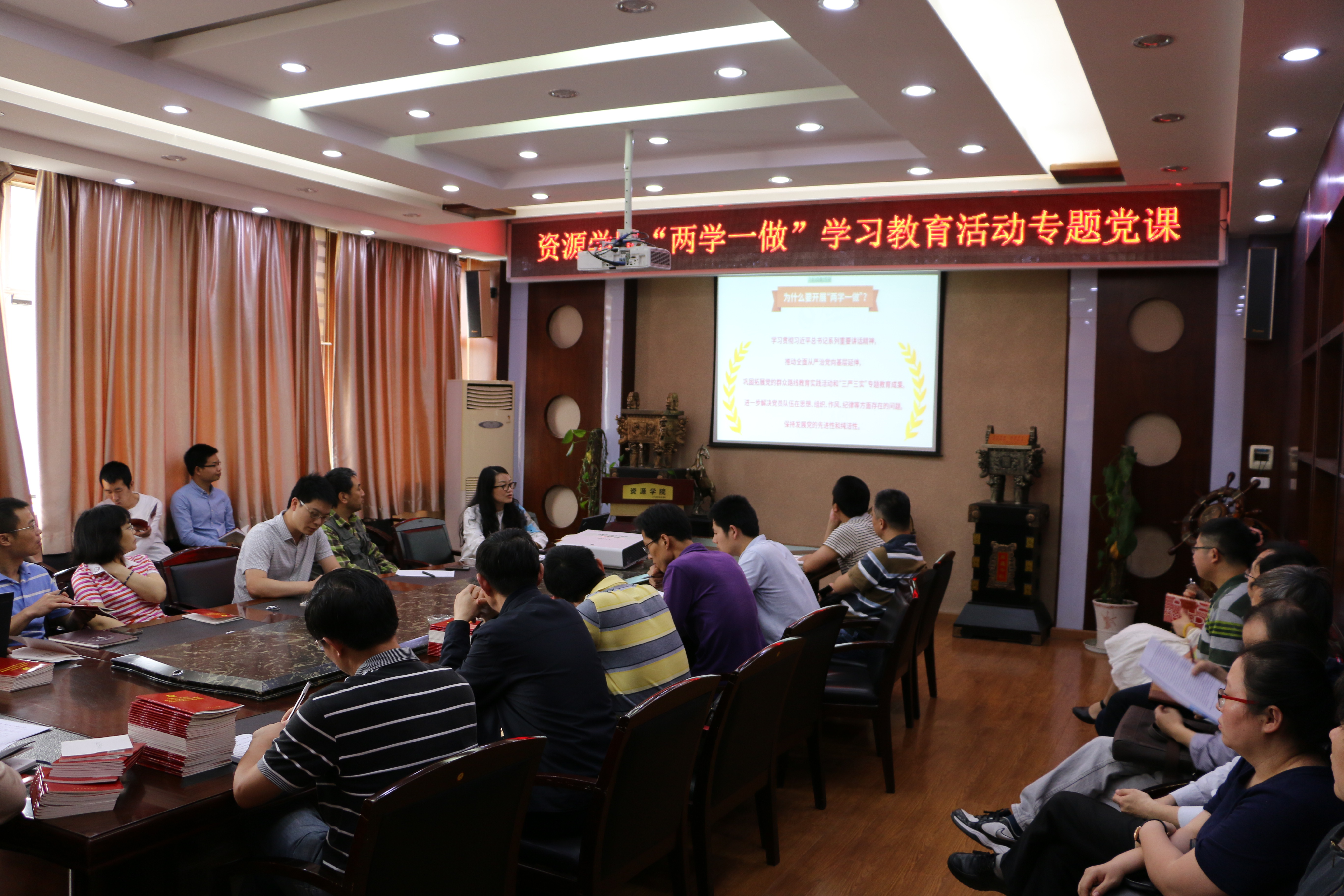 在主楼报告厅开展了“两学一做”专题教育党课,院党委书郭秀蓉为全院教职工党员授课,学院全体教职工党员参加学习教育。