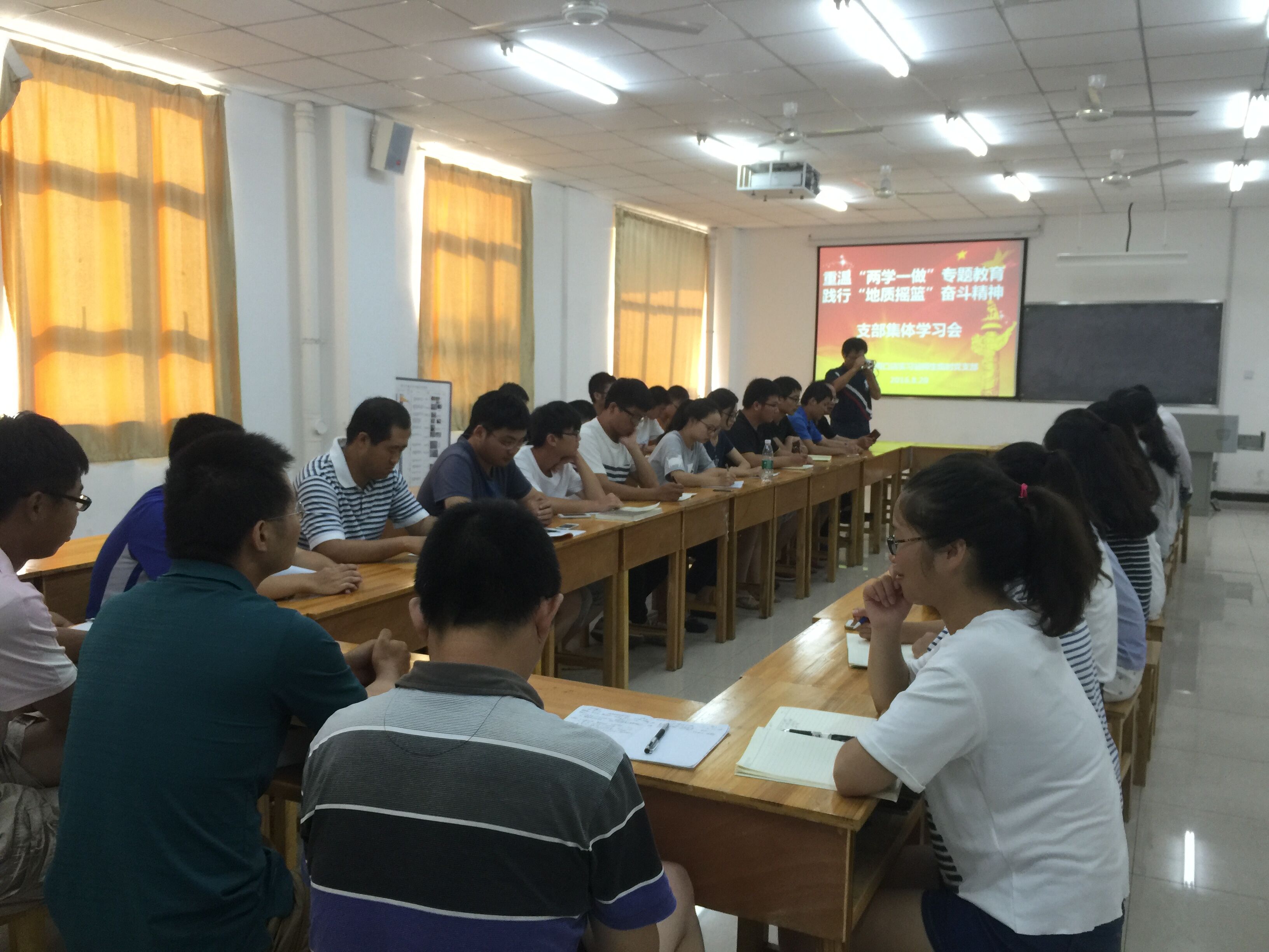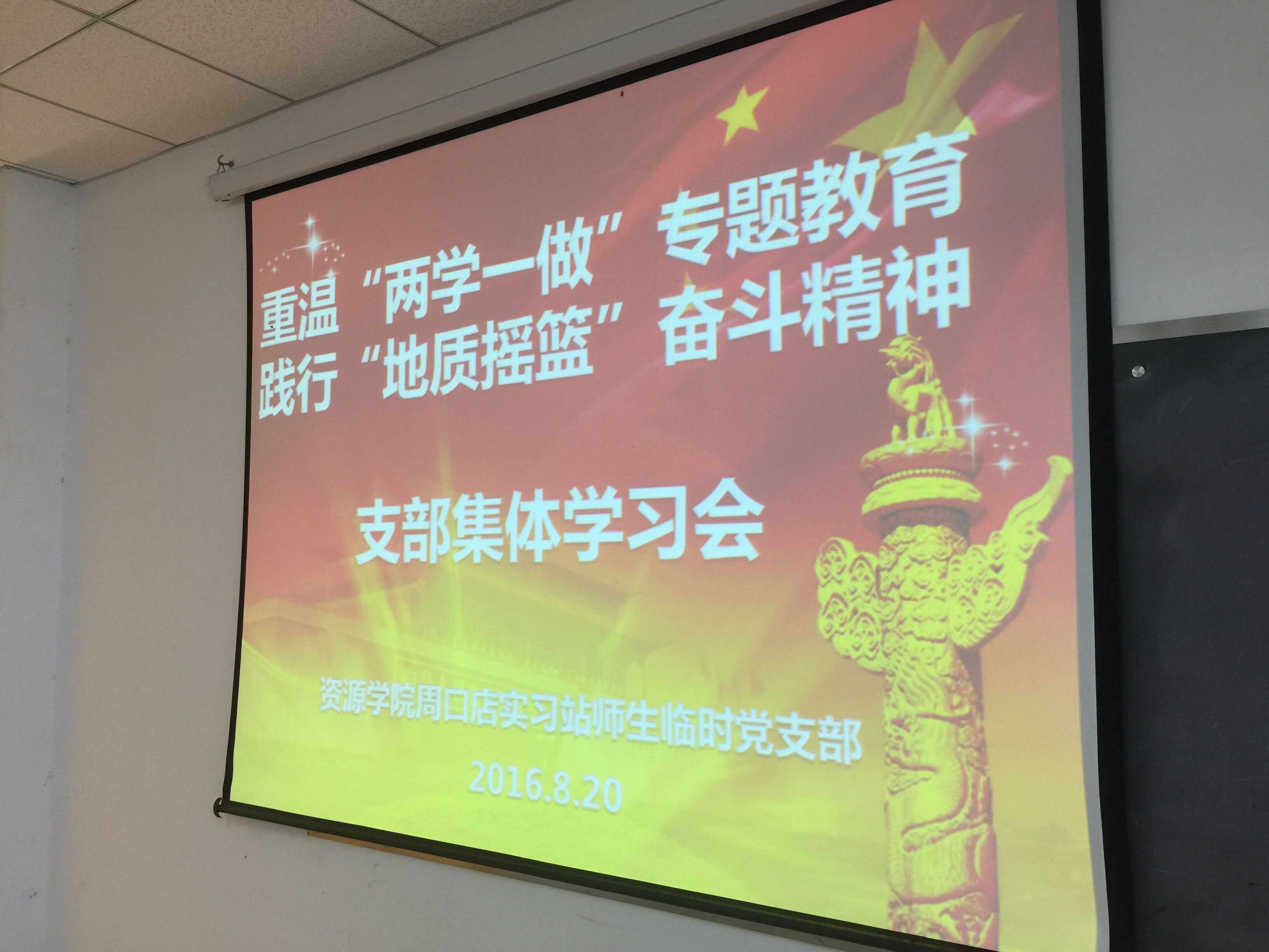 周口店师生临时党支部在综合楼2教室举行开展了“重温两学一做专题教育,践行地质摇篮奋斗精神”的主题党日活动。性吧