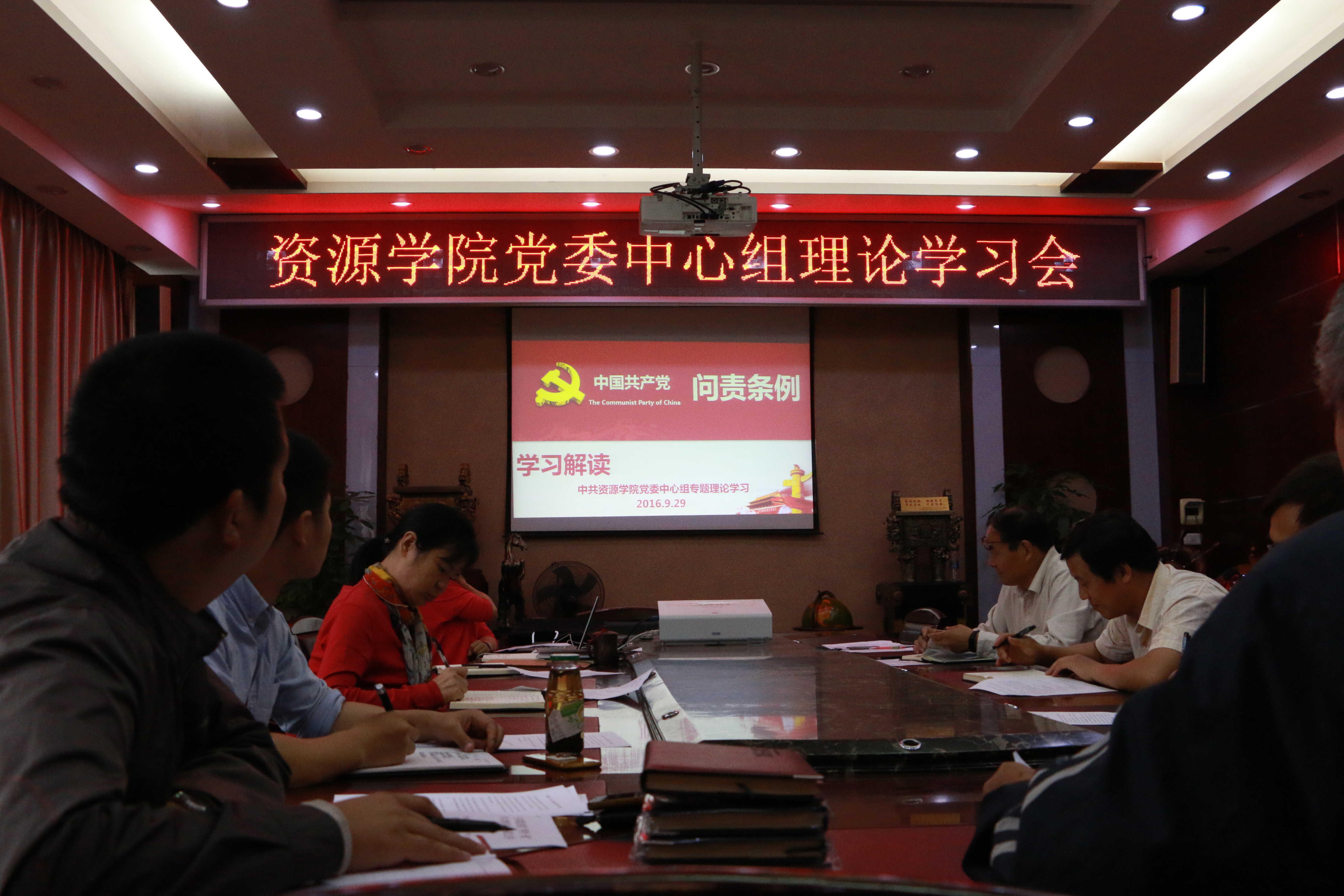 2016年度党建工作任务指导书,同时安排了2016年党委中心组理论学习计划。她强调,各支部要根据学院的学习计划,认真落实学习内容。随后,郭秀蓉带领大家学习了《中国共产党员问责条例》。郭秀蓉从“条例”出台的背景、条例的四大亮点及具体内容三个方面为全体与会人员对“条例”进行了详细的解读。