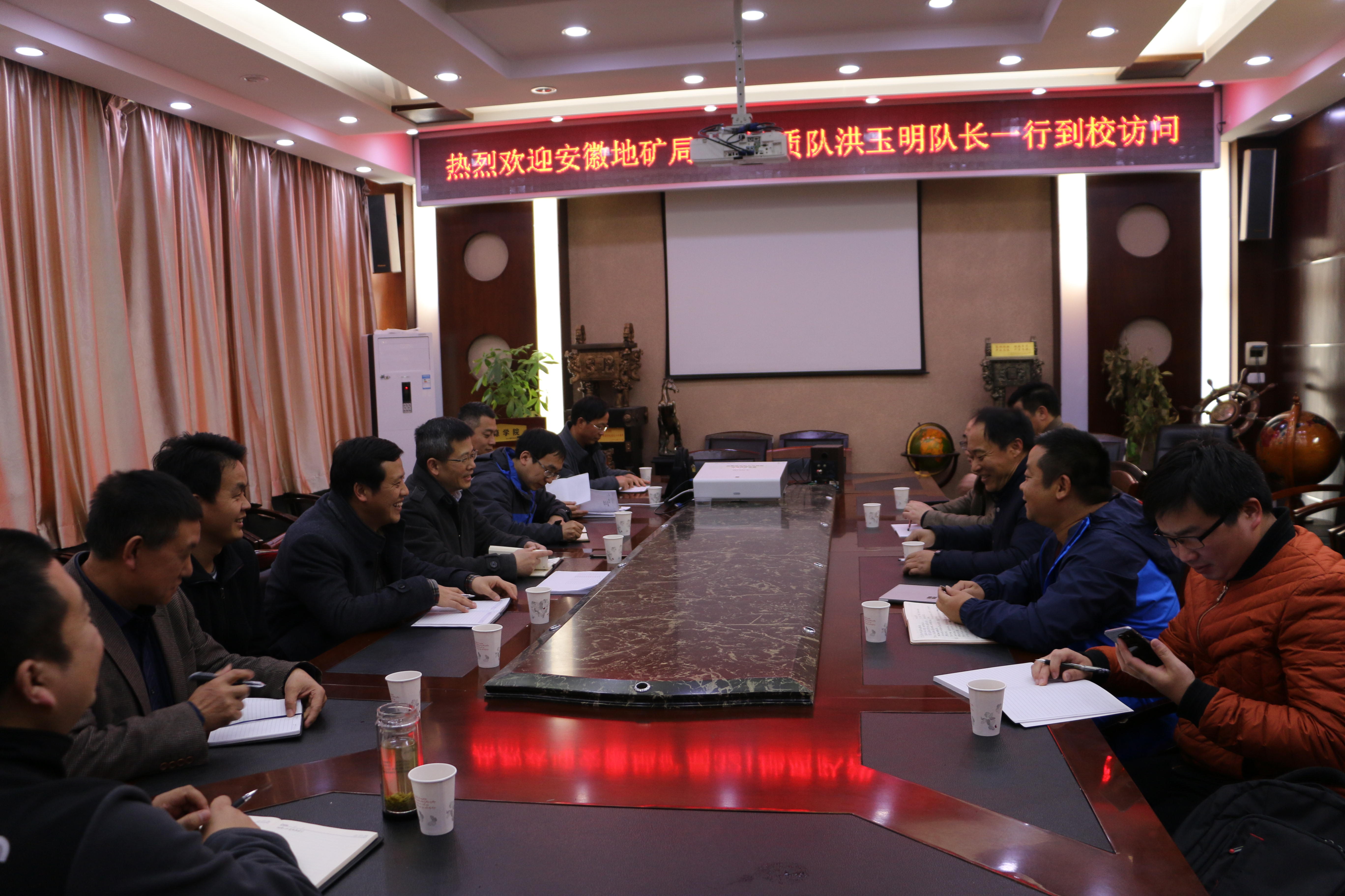 2月17日,安徽省地矿局321地质队(以下简称321队)洪玉明队长一行来我院就深化合作召开交流座谈会,学院领导班子、教授代表及地调院副院长边建华参会,座谈会由院长李建威主持。
