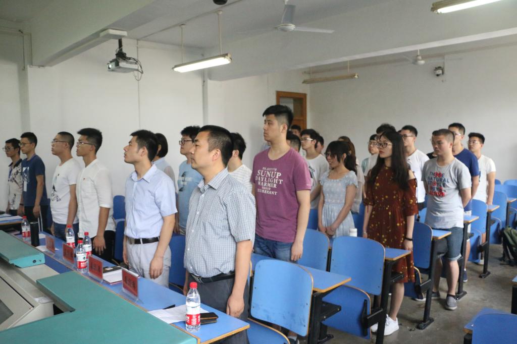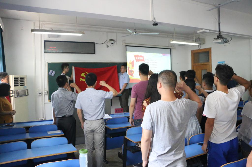 在教一楼201举行新党员宣誓仪式暨2018年学生党员集中教育。学院党委副书记张建华、党建办公室主任章帆、全体新党员参加了此次活动。