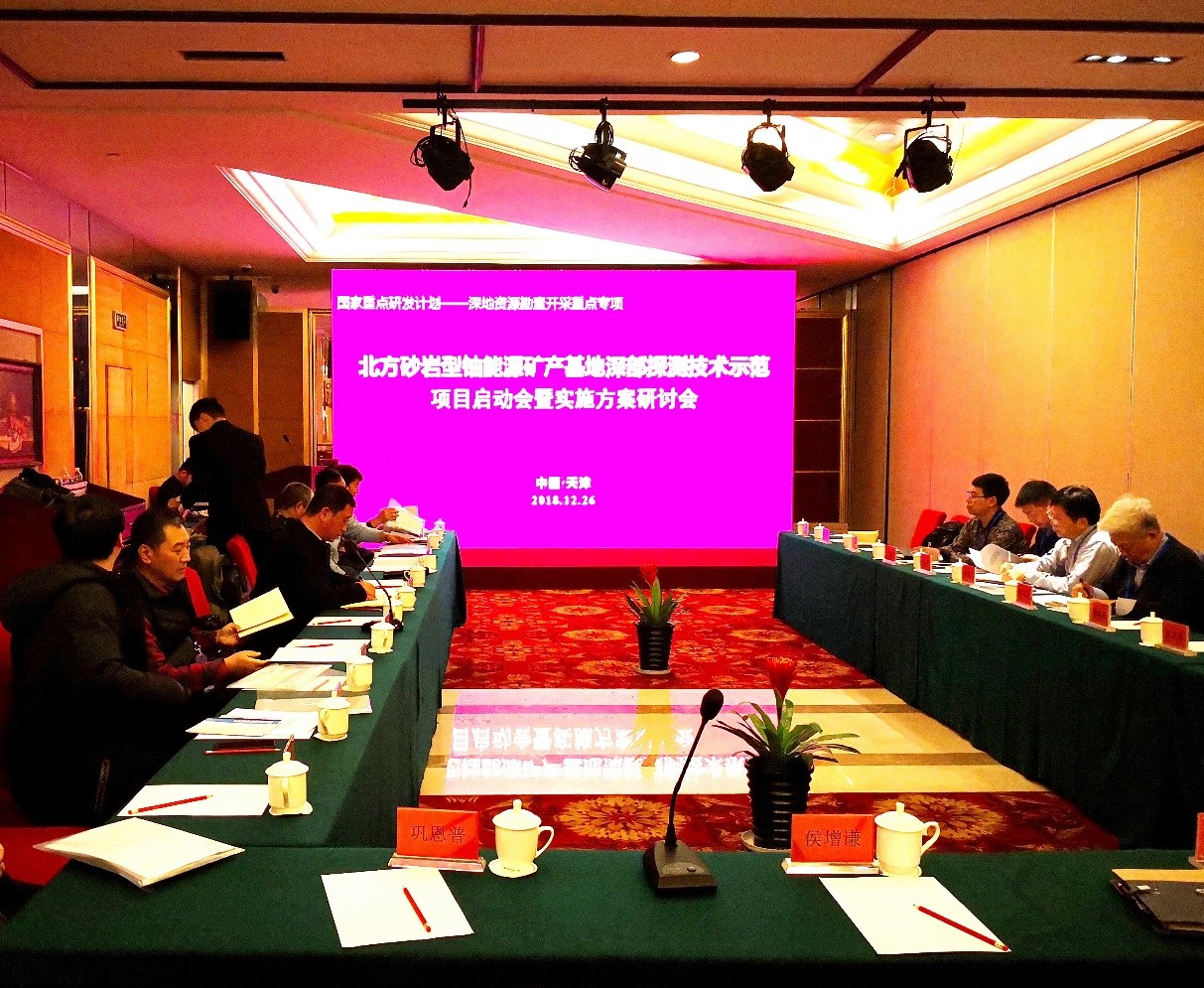 12月25日至27日,国家重点研发计划“深地资源勘查开采”重点专项“北方砂岩型铀能源矿产基地深部探测技术示范项目(2018YFC0604200)”启动会暨实施方案研讨会在天津顺利召开。会议由侯增谦院士主持,天津市科学技术局社会发展处副调研员党馨、中国21世纪议程管理中心干部向鹏分别致辞,对项目实施推进提出了具体要求。该项目由中国地质调查局天津地质调查中心牵头承担,我院煤工系焦养泉教授团队负责第2课题“北方重要盆地矿集区铀富集机理和成矿模式(2018YFC0604202)”,并在会上进行汇报。