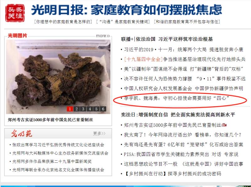 我院党委书记李宇凯撰写的文章《守初心担使命需要用好“四心”》继在《性吧 报》刊登后,12月5日又得到光明网性吧首屏推送和全网转发。