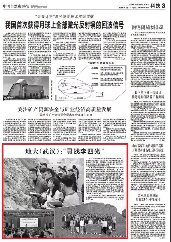 编者按:2019年12月14日出版的《中国自然资源报》,以《地大(武汉):“寻找李四光”》为题,对我院“寻找李四光·卓越地质师培育工程”赛事进行报道。全文如下: