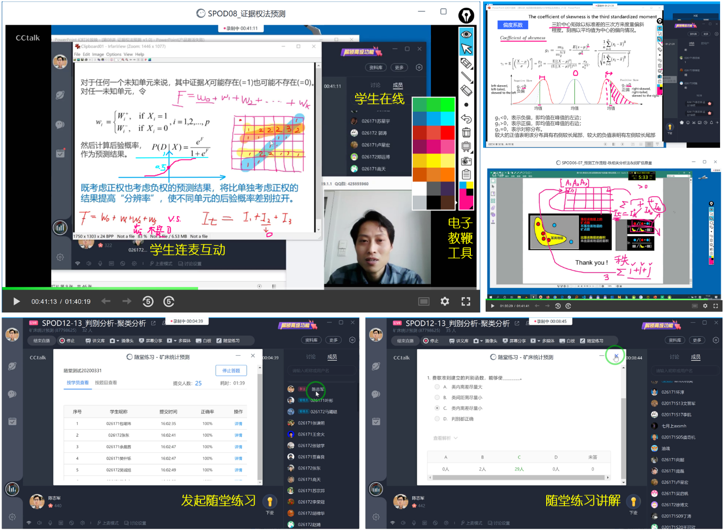 在线教学对教师的信息化教学能力是有要求的,除了有场地、软件、硬件之外,教师必须要熟练掌握和驾驭你的虚拟教学平台,就如了解实体教师的一桌一凳一样。特别时进行师生问答环节,学生举手抢麦、老师点名邀请学生上麦、多人同时连麦、老师控制学生下麦等功能,老师在开课时就要和学生演练以便熟悉操作方式。按知识点讲解进度发起两三次随堂测验也是一个非常好的教学手段,可以随时了解学生学习情况。基于选定的远程教学平台,师生信息素养的共同掌握是在线教学的基础。虽然在2月初不少在线教学平台由于巨量教学需求暴涨“崩坏”服务,但是这些情况都是暂时,信息技术的提升会随着需求的增长会越发成熟和稳定,老师们学习掌握信息化教育技术的主流是必然的。并且应珍惜难得的学习和教研契机,从实际需要出发,我们不得不学;从教育趋势看,我们应尽早学;从跨行业看,这是运用远程办公、远程协助平台开展教学、科研活动的良好契机。