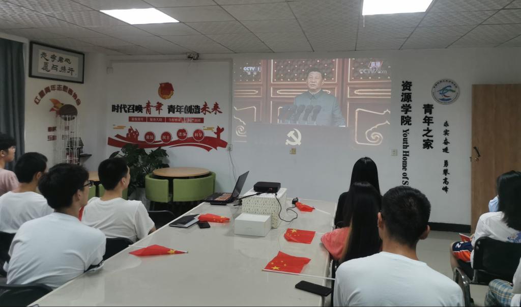 一世纪风雨兼程,九万里风鹏正举。2021年7月1日8时,庆祝中国共产党成立100周年大会在北京天安门广场隆重举行。为学习贯彻习近平总书记在中国共产党成立100周年庆祝大会上的重要讲话精神,学院集中组织师生、各党支部、团支部在主楼330报告厅、青年之家集中收看庆祝大会。学院党委书记高复阳参加。
