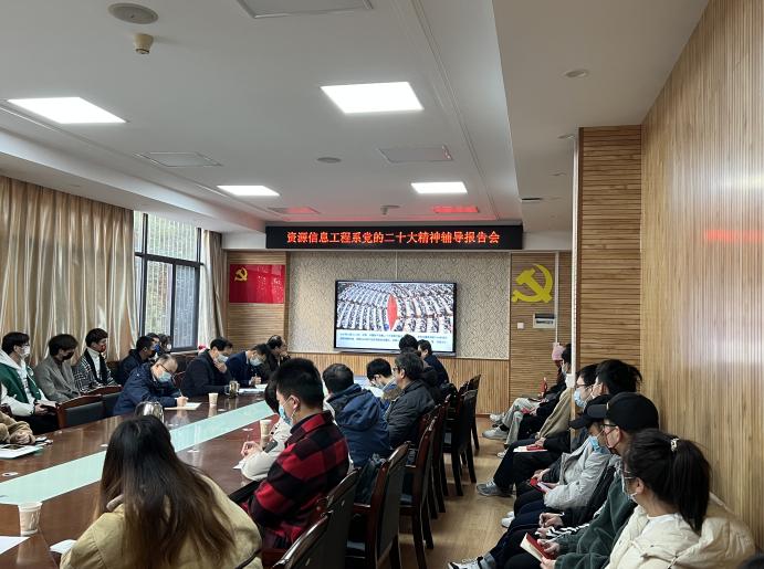 12月9日上午,学院党委书记高复阳给资源信息工程系全体师生党员作党的二十大精神学习专题辅导报告《领会精神 担当使命》,全面解读党的二十大精神,引导党员师生以实际行动深入学习宣传贯彻党的二十大精神,在推进“双一流建设”、落实好立德树人根本任务等方面再创佳绩。