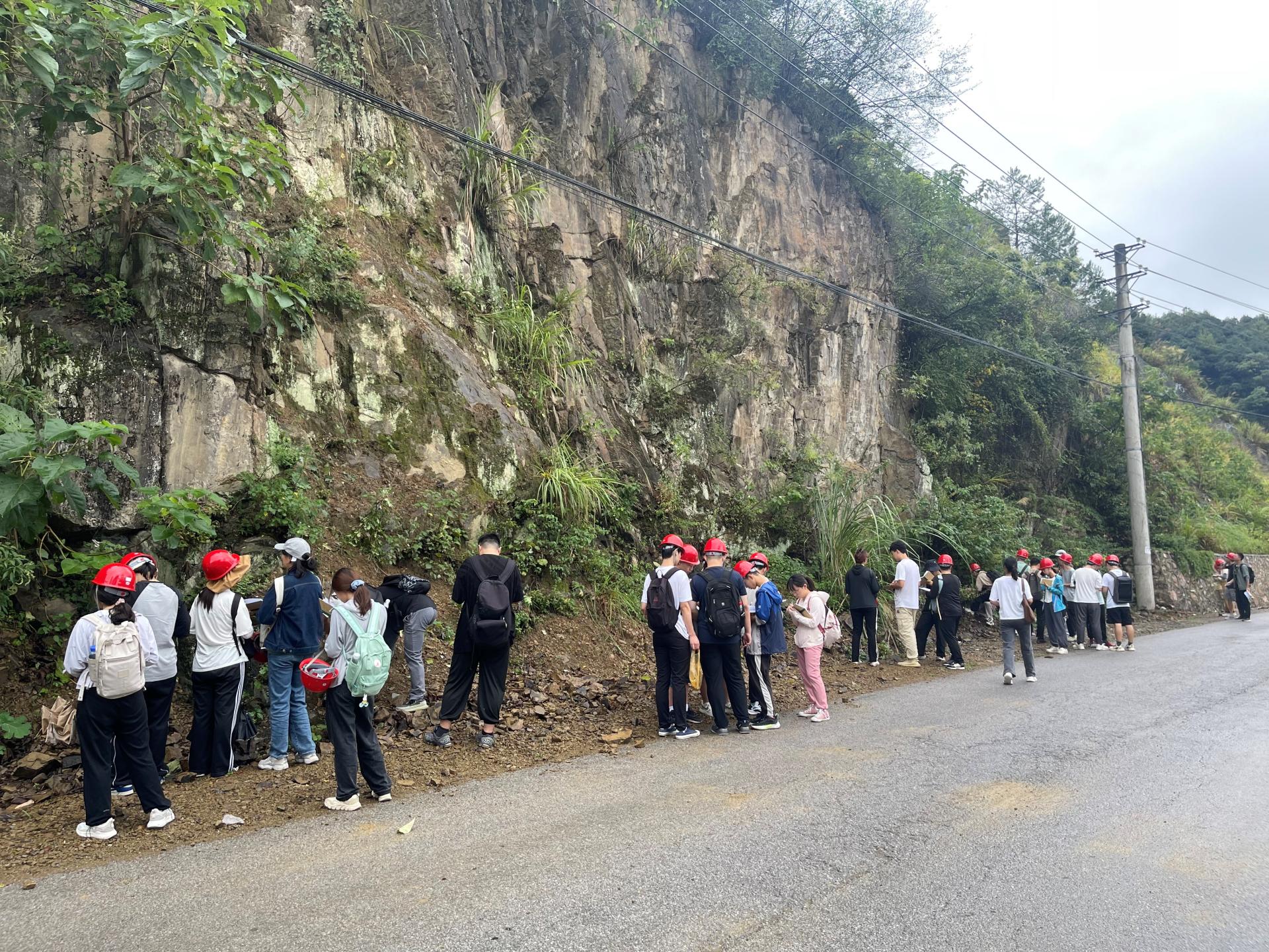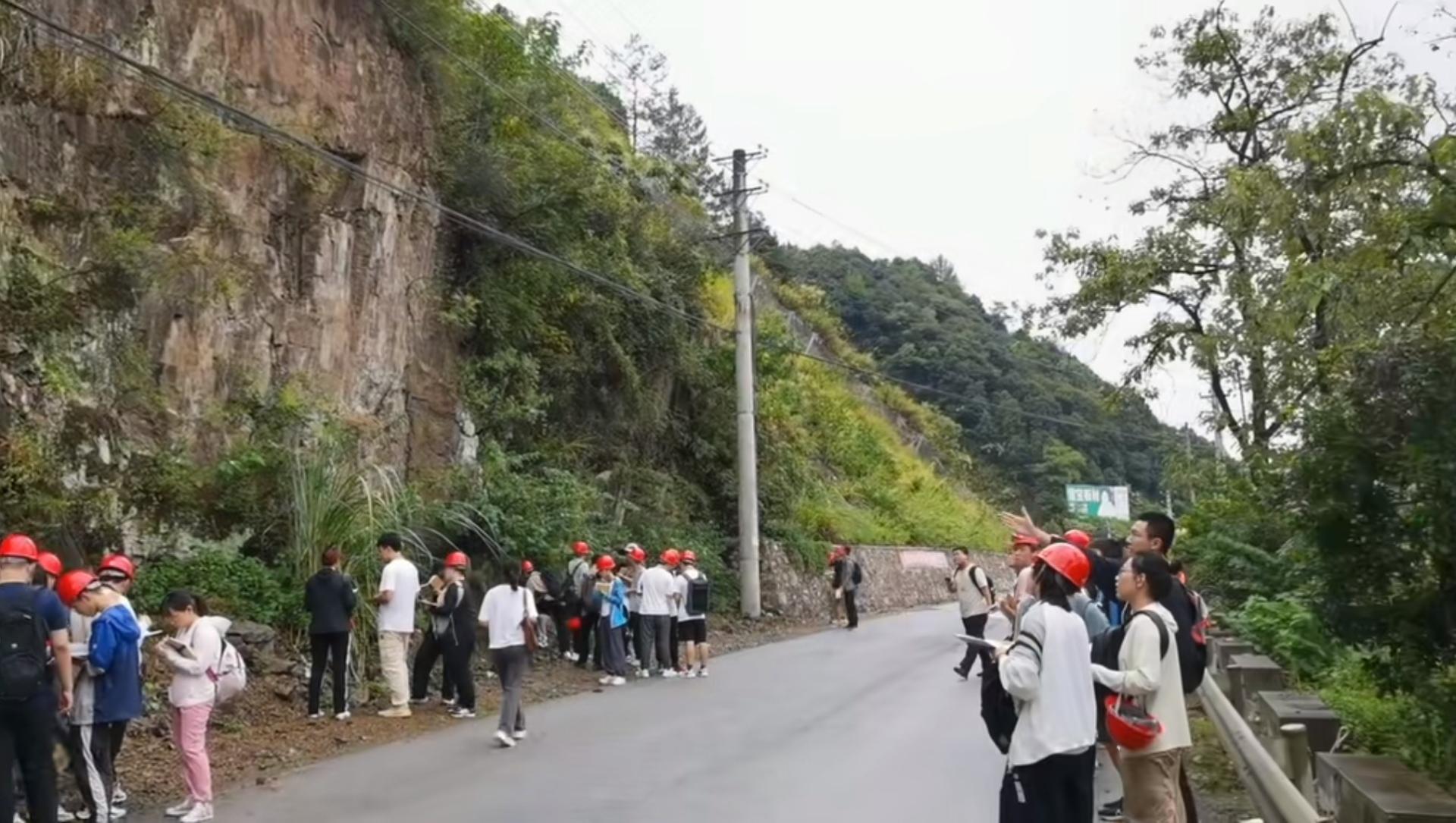 淅淅沥沥的秋雨也未能阻挡学生们探索通山地质现象的步伐。无论是通羊大道上贯穿志留、石炭、二叠的地质剖面,还是通山客运站附近被居民楼围绕的冲积扇沉积;无论是迎宾路上岩浆岩与沉积岩的奇妙碰撞,还是隐藏在迎宾大道旁广告牌后的河道滞留沉积;无论是弥陀塔寺内藏着的“金龟”,还是界水岭古老的沉积构造,隐藏在岩石中的沧海桑田、海陆变迁,都一一被同学们挖掘。这里是一次次大地运动的见证者,也是丰富矿产资源的孕育者。通山,不仅是美景之地,更是地学学子们的知识宝库。