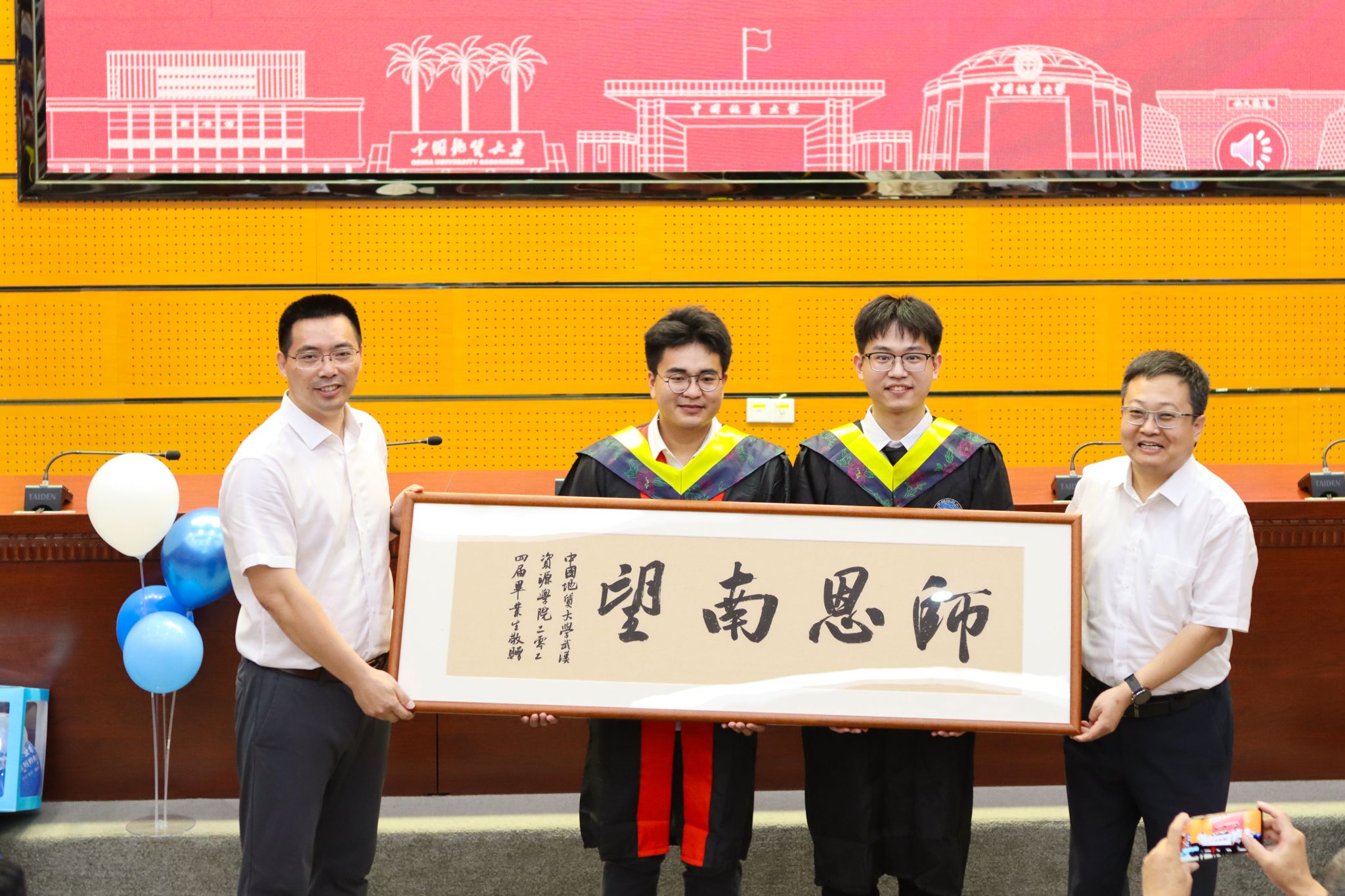 严德天真情告白毕业生:回首求学时光,有太多故事,令我们感恩感怀。在回味无穷的春天、意犹未尽的夏天、硕果累累的秋天、洁白无瑕的冬天,你们读文献、进课堂、出野外、做科研。愿此去繁华似锦,再相逢依然如故。地大是大家永远的港湾,期望大家常回学校看看,老师们永远在这守望你们!