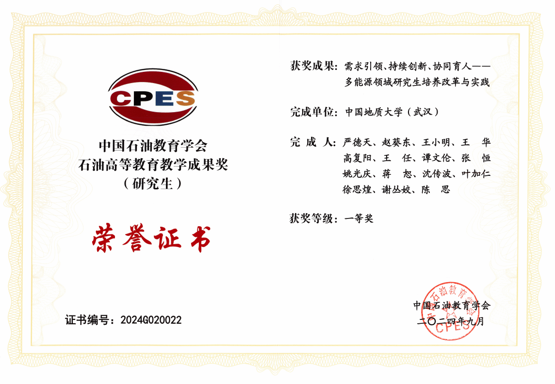 中国石油教育学会石油高等教育教学成果奖(研究生)一等奖